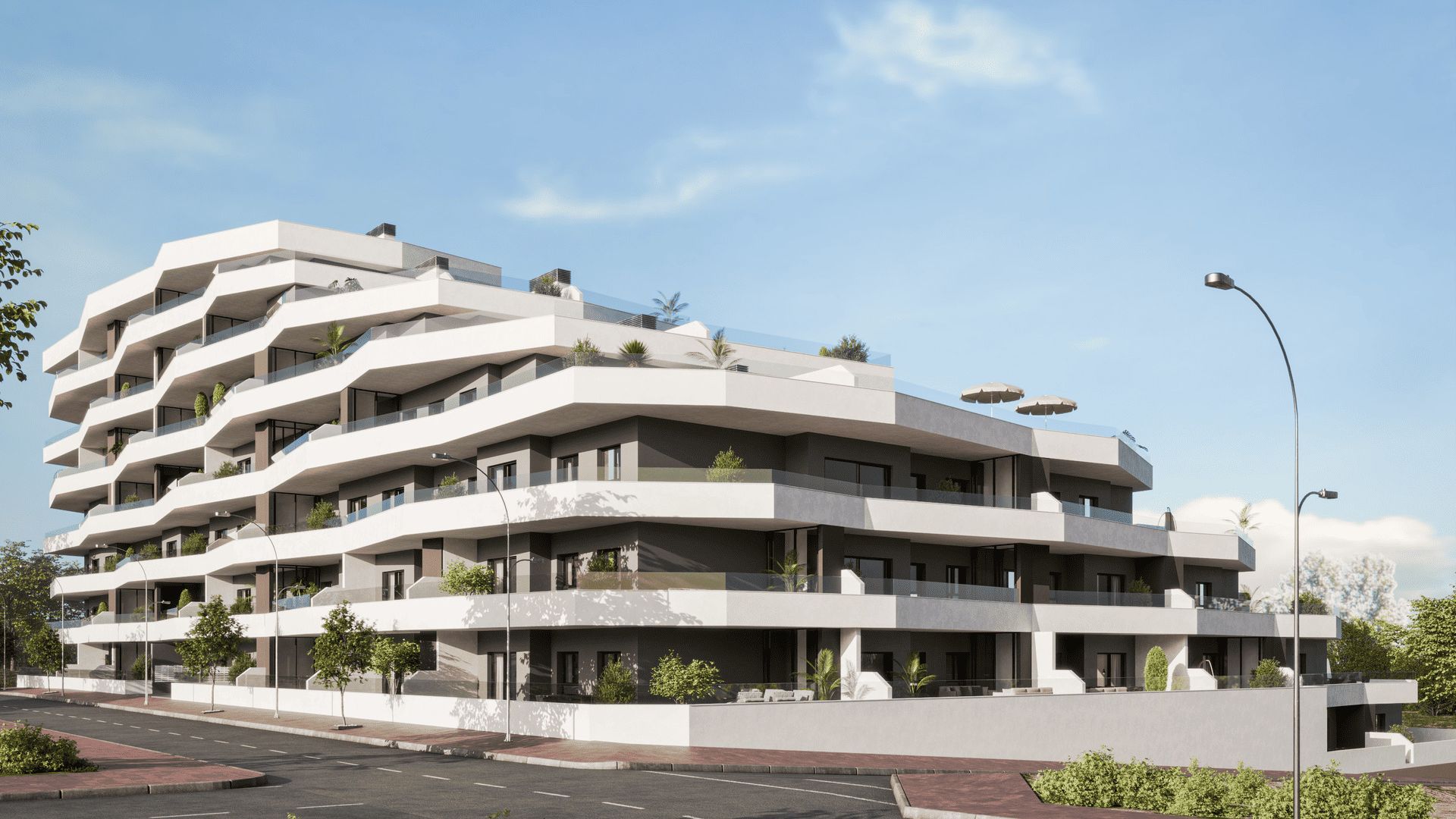 Die Wohnungen verfügen über großzügige Terrassen, auf denen Sie das mediterrane Klima das ganze Jahr über genießen können. Einige Einheiten bieten private Gärten und Terrassen im Erdgeschoss, während die Penthäuser über große Sonnenterrassen verfügen, die sich ideal für Unterhaltungen im Freien oder zur Entspannung eignen. Die zentrale Lage der Anlage ermöglicht einen schnellen Zugang zu Parks, Wanderwegen und Grünflächen und bietet den Bewohnern eine ruhige und natürliche Umgebung.