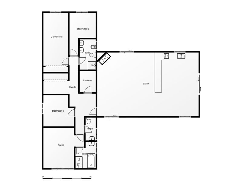 Im Inneren verfügt die Villa über einen hellen, offenen Wohnbereich, in dem ein Kamin Wärme und Charakterverleiht. Die moderne offene Küche ist ideal für Familienessen oder gemütliche Abende mit Freunden. Es gibt vier große Schlafzimmer und zwei großzügige Badezimmer, darunter ein luxuriöses En-Suite-Badezimmer, das maximalen Komfort bietet. Das Haus ist rollstuhlgerecht, mit einer Rampe zum Haupteingang und ohne Stufen oder Schwellen im Inneren.