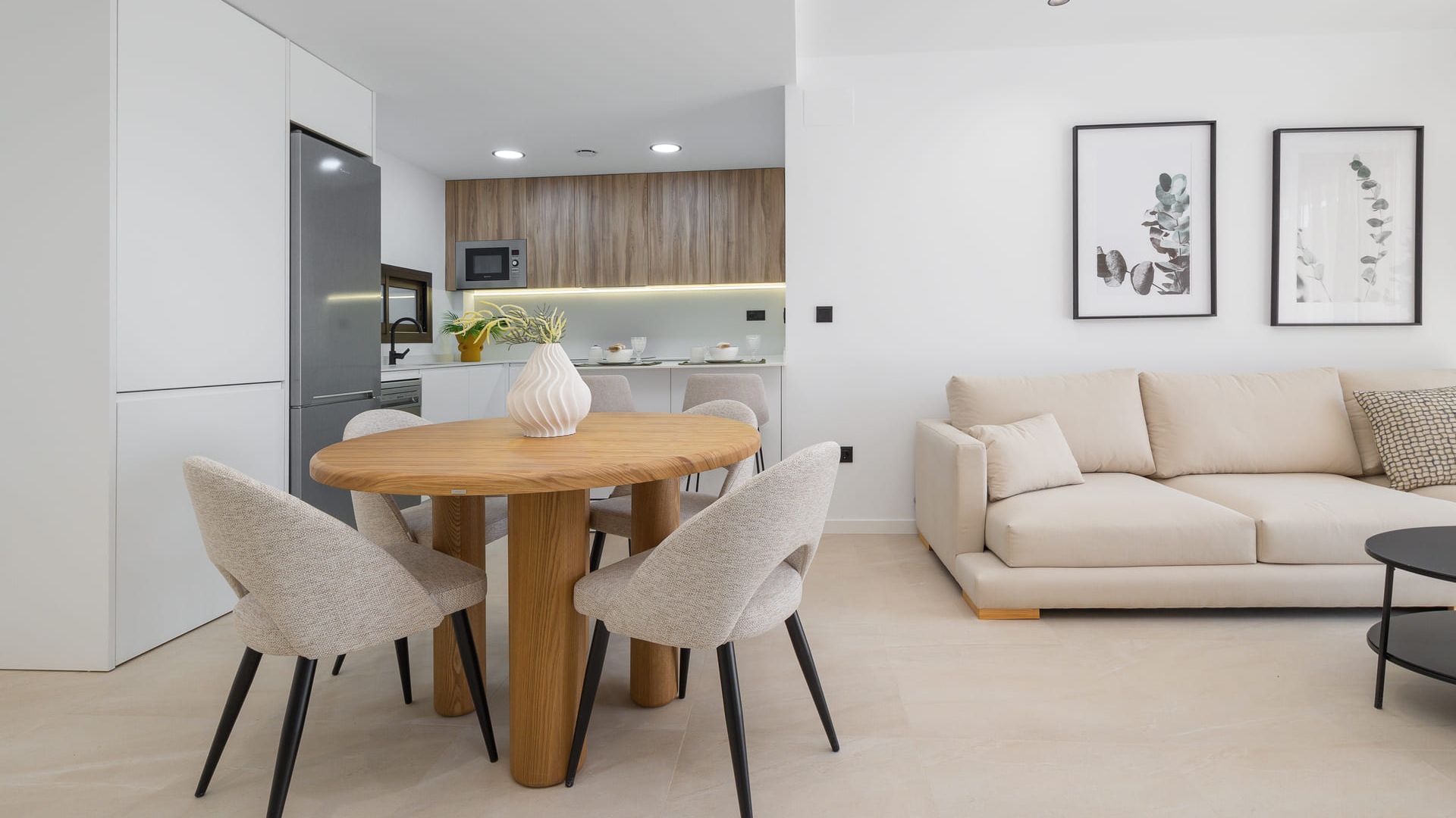 Das Innere der Wohnungen ist sorgfältig gestaltet, um Komfort und Modernität zu bieten. Die Böden aus Feinsteinzeug verleihen einen eleganten Touch und sind pflegeleicht. Die Wohnungen sind mit modernen Geräten ausgestattet, die sicherstellen, dass die Küche sowohl funktional als auch stilvoll ist. Elektrische Rollläden und die Video-Gegensprechanlage bieten ein zusätzliches Maß an Komfort und Sicherheit. Einbauschränke in den Schlafzimmern bieten viel Stauraum und halten die Räume ordentlich und aufgeräumt. Die Grundrissoptionen umfassen Wohnungen mit 2 und 3 Schlafzimmern, alle mit 2 Bädern, die ausreichend Platz für Familien unterschiedlicher Größe bieten.