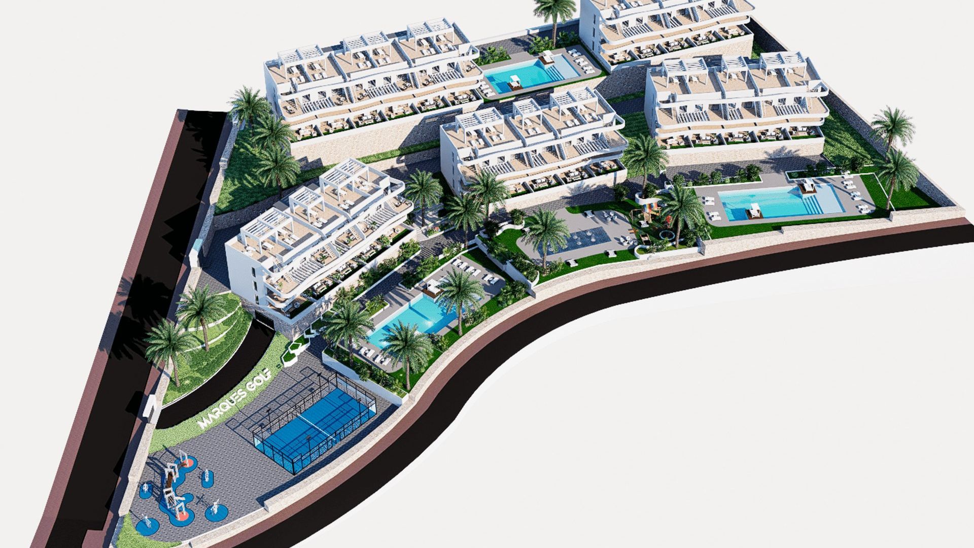 Die Wohnanlage bietet eine breite Palette von Gemeinschaftsbereichen, die das Wohnerlebnis der Bewohner bereichern. Zu den Einrichtungen gehören ein Gemeinschaftspool, ideal zum Abkühlen an heißen Sommertagen, und ein Gemeinschafts-Jacuzzi zur Entspannung. Sportliebhaber können einen Paddelplatz und ein Gemeinschafts-Fitnessstudio genießen, während den Kleinen ein Kinderspielbereich zur Verfügung steht. Die Gartenanlagen bieten eine grüne und ruhige Umgebung, ideal zum Spazierengehen oder einfach zum Genießen der frischen Luft. Darüber hinaus verfügt die Wohnanlage über eine Gemeinschaftsgarage, die Komfort und Sicherheit für die Fahrzeuge der Bewohner bietet.