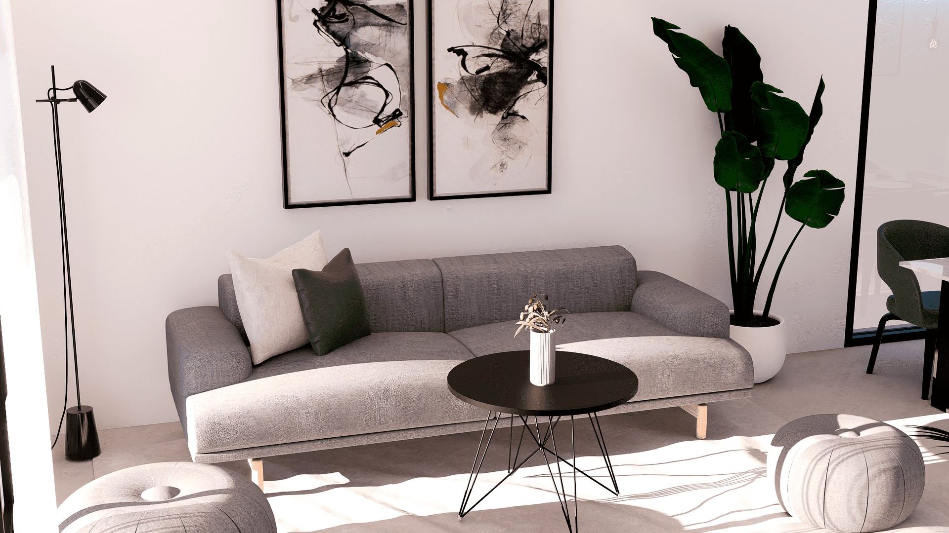 Das Innere der Wohnungen ist sorgfältig gestaltet, um Komfort und Modernität zu bieten. Die Apartments, Erdgeschosswohnungen und Penthäuser verfügen über Feinsteinzeugböden, die einen eleganten Touch verleihen und pflegeleicht sind. Alle Immobilien sind mit Klimaanlagen ausgestattet, die das ganze Jahr über ein angenehmes Ambiente gewährleisten. Einbauschränke bieten viel Stauraum, während die Video-Gegensprechanlage ein zusätzliches Maß an Sicherheit und Komfort bietet. Die Aufteilung umfasst zwei Schlafzimmer und zwei Badezimmer, die den Bedürfnissen verschiedener Familientypen gerecht werden.