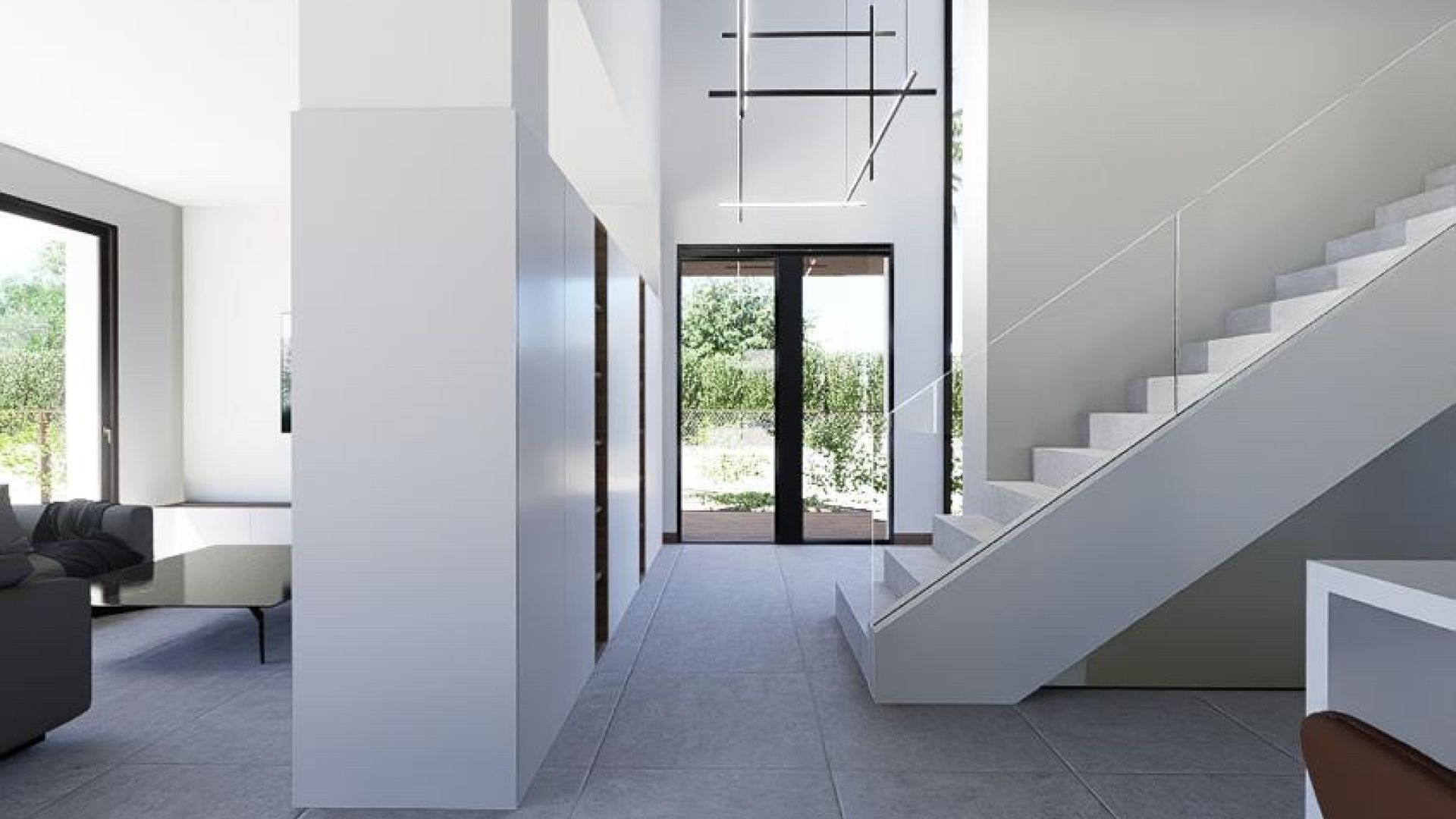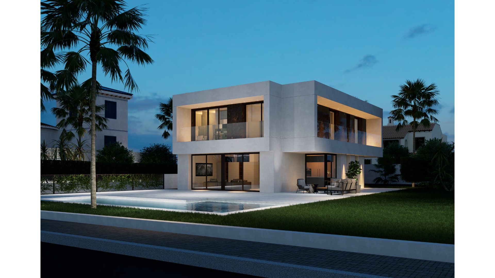 Die Villa beeindruckt durch klare Linien, offene Räume und viel Tageslicht. Auf einem Grundstück von 671 m² bietet sie die perfekte Balance zwischen Privatsphäre und Offenheit.