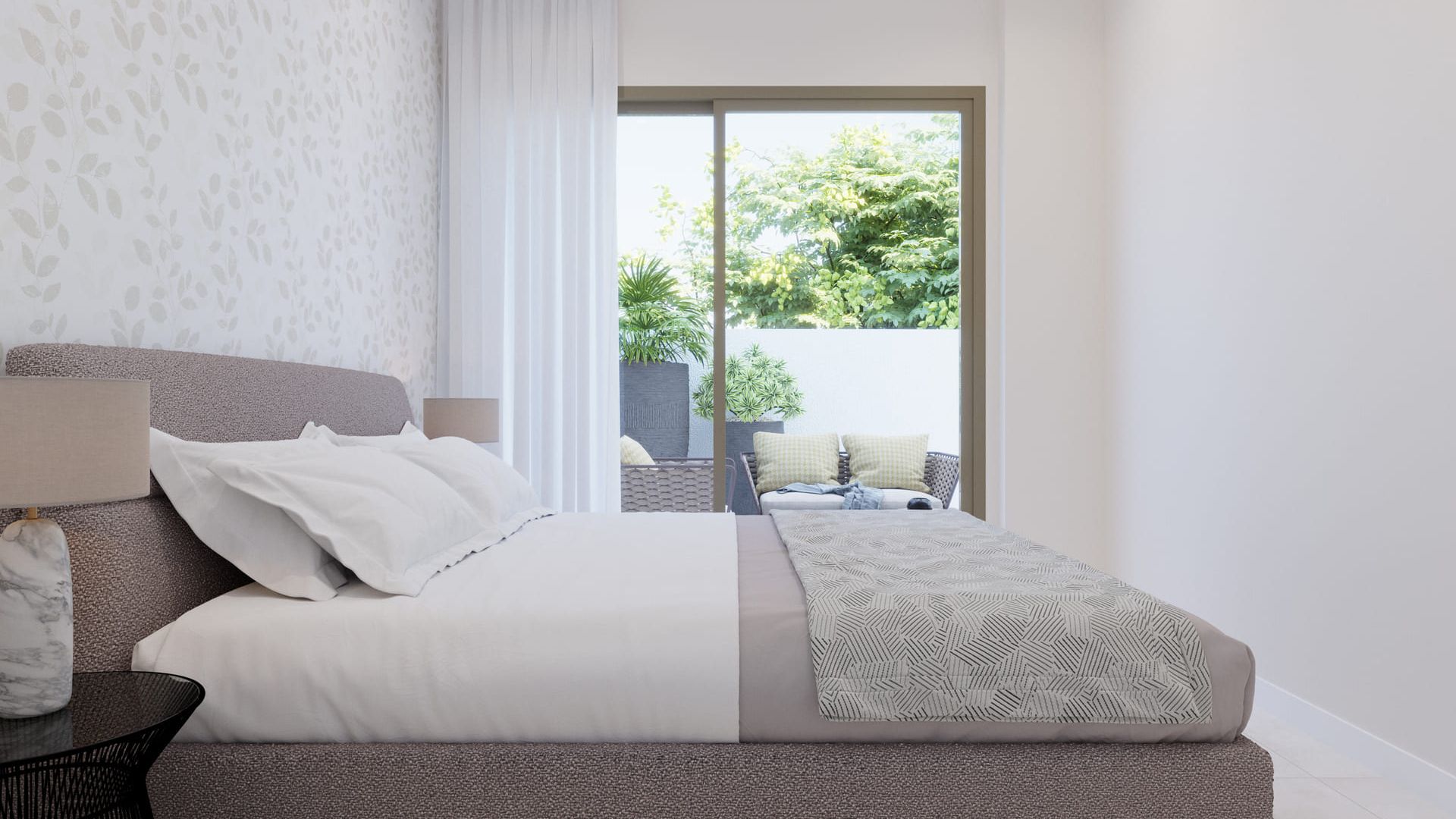Arquitectura moderna y elegante, con líneas limpias y acabados de primera calidad. Fachadas minimalistas con materiales de alta resistencia y fácil mantenimiento. Jardines comunitarios con áreas de descanso y vegetación autóctona. Piscina comunitaria, ideal para relajarse y refrescarse. Bungalows de planta alta con solárium privado, que incluyen pérgola de aluminio y cocina de verano exterior. Plazas de aparcamiento privadas y trasteros para bicicletas, asegurando mayor comodidad para los residentes.