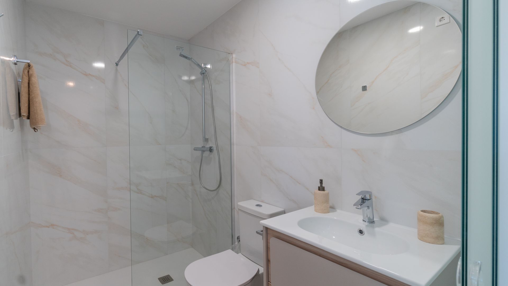 El interior de las viviendas está pensado para ofrecer un espacio acogedor y funcional. Las opciones de distribución incluyen viviendas de 2, 3 y 4 dormitorios, con 2 o 3 baños, adaptándose a las necesidades de familias de diferentes tamaños. Cada unidad está equipada con electrodomésticos modernos y cuenta con armarios empotrados que optimizan el espacio de almacenamiento. La preinstalación de aire acondicionado asegura un ambiente agradable durante todo el año. Los suelos de cerámica y gres porcelánico no solo aportan un toque de elegancia, sino que también son fáciles de mantener, garantizando durabilidad y estética.
