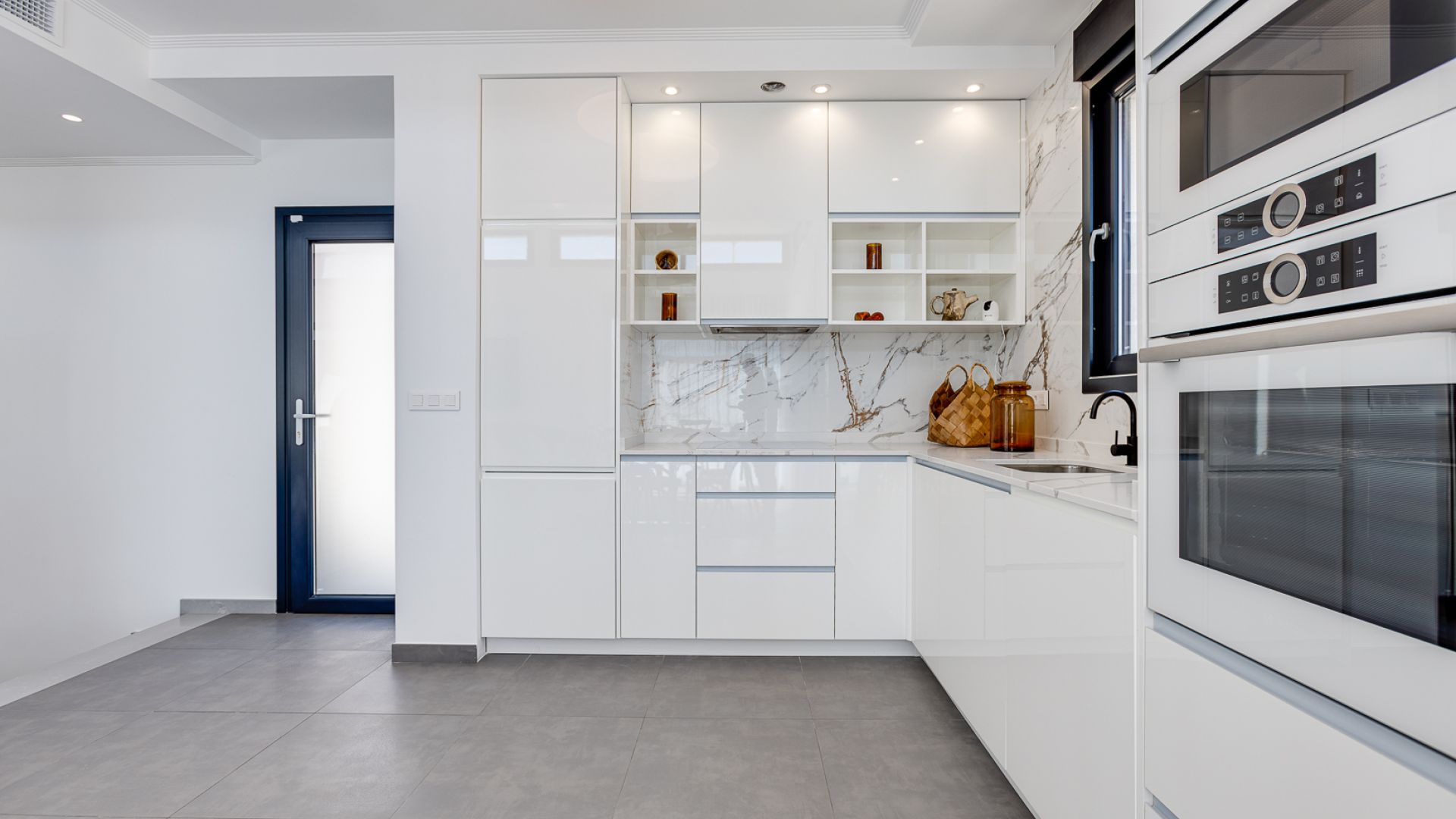 L'intérieur de la villa méditerranéenne de La Mata est conçu pour offrir luxe et confort dans les moindres détails. D'une superficie totale de 310 m², la villa dispose de 4 chambres doubles spacieuses, dont 2 avec salle de bains privative, pour plus d'intimité et de confort. Les 4 salles de bains sont équipées de finitions de haute qualité. La villa dispose de deux salons spacieux offrant une atmosphère agréable pour la vie de tous les jours et les réceptions. La cuisine moderne est conçue pour répondre à tous les besoins culinaires, complétée par un vaste espace de rangement. Les grandes fenêtres laissent entrer une abondance de lumière naturelle, créant une atmosphère lumineuse et accueillante dans toute la maison. Les terrasses accessibles depuis les zones principales offrent des vues à couper le souffle et un flux continu entre l'intérieur et l'extérieur, optimisant l'expérience de vie dans cette villa de rêve.