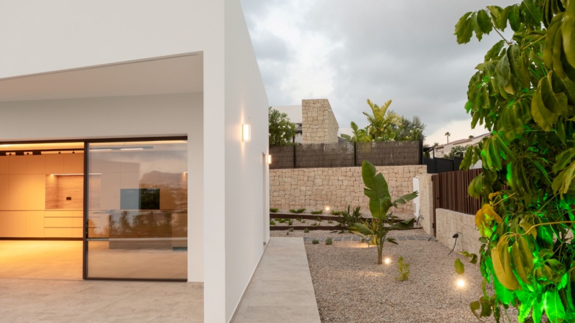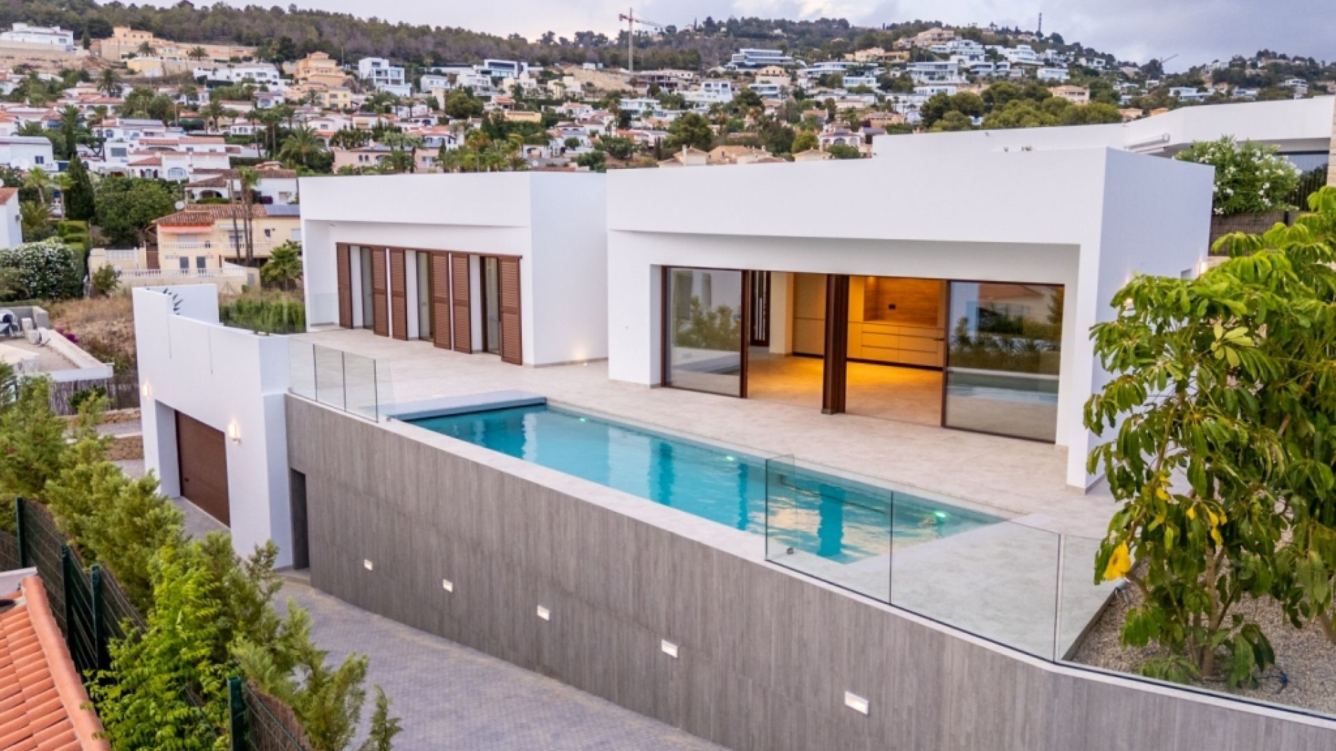 Villa moderne de luxe sur la côte de Benissa près de Calpe – À seulement 1,5 km de la plage de La Fustera (Costa Blanca, Alicante)Cette superbe villa contemporaine, actuellement en construction par Inmobiliaria Celenia, est située dans l'un des quartiers résidentiels les plus prisés de la Costa Blanca. Entre les charmantes localités de Moraira et Calpe, la propriété se trouve à seulement 1,5 km de la plage de La Fustera, une plage de sable fin labellisée Pavillon Bleu, réputée pour la qualité de ses eaux et ses excellentes installations.Distribution de la villa :La maison est répartie sur deux niveaux soigneusement conçus :Rez-de-chaussée : On y trouve un grand garage avec capacité pour deux véhicules et un accès direct à l'intérieur. Cet étage comprend également une chambre avec salle de bain privative et dressing, une buanderie entièrement équipée, des toilettes invités ainsi qu'un espace dédié au bien-être et à la détente, idéal pour installer un spa ou une salle de loisirs. Un escalier intérieur mène à l'étage supérieur.Étage supérieur : L'entrée principale s'ouvre sur un hall qui dessert une cuisine moderne ouverte entièrement équipée avec des appareils haut de gamme, intégrée dans un vaste salon-salle à manger lumineux donnant accès à la terrasse et à la piscine. De l'autre côté se trouve la zone nuit, composée de trois chambres, dont une avec salle de bain privative, et une seconde salle de bain partagée. Toutes les chambres bénéficient d'un accès direct à la terrasse de la piscine.Caractéristiques principales et finitions haut de gamme : Cuisine design avec colonnes toute hauteur, deux niches éclairées par LED et îlot central. Équipements inclus : four, micro-ondes, tiroir chauffant, deux réfrigérateurs-congélateurs combinés, lave-vaisselle, hotte intégrée au plafond au-dessus de la plaque de cuisson de 90 cm. Buanderie avec meubles, évier, lave-linge, sèche-linge, adoucisseur d'eau, chauffe-eau thermodynamique de 250 L et ballon tampon. Climatisation gainable chaud/froid avec thermostats individuels dans chaque pièce. Chauffage au sol par pompe à chaleur, avec régulation indépendante dans chaque pièce. Pré-installation du système d'alarme intérieur et extérieur. Menuiserie extérieure en aluminium à rupture de pont thermique, avec excellente isolation thermique et acoustique. Volets roulants motorisés ou persiennes extérieures dans les chambres (selon projet). Vitrage à faible émissivité pour une isolation thermique optimale, une transmission lumineuse élevée et une protection solaire efficace. Menuiserie intérieure avec armoires encastrées du sol au plafond, portes plaquées bois Etimoe à l'étage supérieur et laquées blanches au rez-de-chaussée, avec charnières invisibles et fermeture magnétique. Salles de bains entièrement équipées avec sanitaires et robinetterie haut de gamme, douches thermostatiques avec pommeau effet pluie et niches murales éclairées par LED RGB avec changement de couleur. Spots LED et luminaires design à l'intérieur et à l'extérieur de la maison. Prises TV et Internet dans les principales pièces. Installation de panneaux solaires photovoltaïques. Piscine chauffée avec couverture automatique, éclairage LED RGB et pompe à chaleur. Jardin paysager à faible entretien. Eau chaude sanitaire produite par aérothermie (250 L). Deux accès : portail piéton avec visiophone et portail motorisé pour les véhicules. Allée d'accès et parking pavés avec dallage antidérapant aspect pierre vieillie. Espace spa ou loisirs avec fenêtres donnant sur la piscine, éclairage LED RGB, pré-installation pour jacuzzi, coin bar avec évier, espace TV/home cinéma, possibilité de table de billard, ventilation mécanique avec récupération de chaleur. Un emplacement privilégié :Située dans l'un des environnements résidentiels les plus beaux et tranquilles de la Costa Blanca, la villa est proche de criques naturelles, de falaises spectaculaires et d'eaux cristallines. À proximité : Plage de La Fustera (1,5 km) : Pavillon Bleu, promenade maritime, accès PMR, aires de jeux, poste de secours, arrêt de bus, parking, bars et restaurants. Sentier écologique de Benissa : belle promenade d'environ 2 km en bord de mer avec vues imprenables. Plage de la Fossa (Calpe) à 2,5 km et Moraira à seulement 9 km. Club nautique Les Basetes (2,3 km) et Club de golf Ifach (6,5 km) – pour les amateurs de sports nautiques et de golf. Date de livraison prévue : juin 2025.