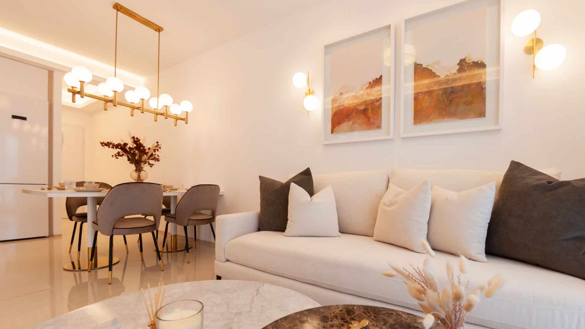 Les intérieurs des maisons de ce complexe résidentiel sont conçus pour offrir un espace moderne et confortable. Avec des surfaces construites allant jusqu'à 116 m² et des espaces de vie de 100 m², les bungalows, les maisons de ville et les villas jumelées ont 2 ou 3 chambres et jusqu'à 3 salles de bains, toutes avec des finitions de haute qualité. Les cuisines américaines, équipées d'appareils modernes, sont parfaitement intégrées au salon, créant ainsi un espace ouvert et lumineux. Les armoires encastrées des chambres à coucher offrent un grand espace de rangement, tandis que les grandes fenêtres permettent à la lumière naturelle de pénétrer abondamment, ce qui renforce la sensation d'espace et de connexion avec l'extérieur. Les solariums et les terrasses offrent un espace supplémentaire pour profiter de l'extérieur.