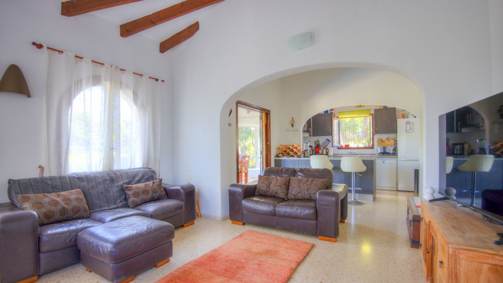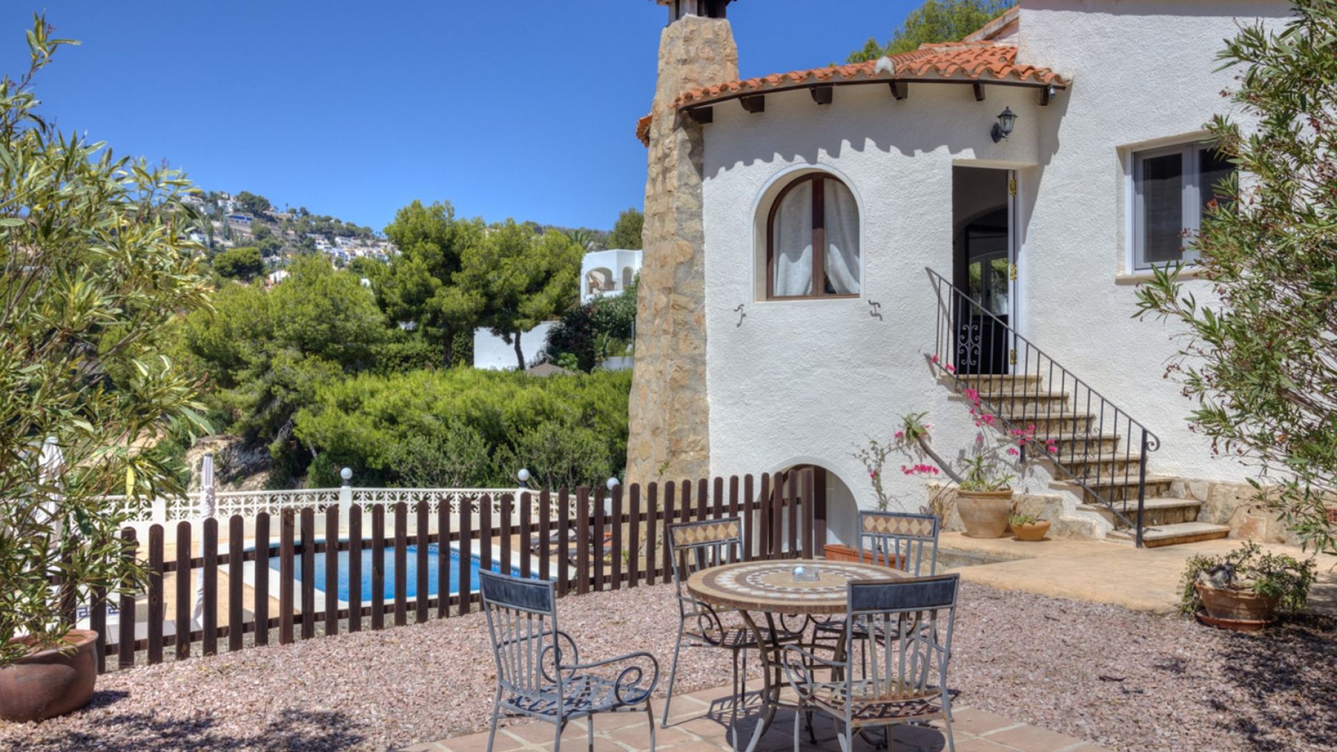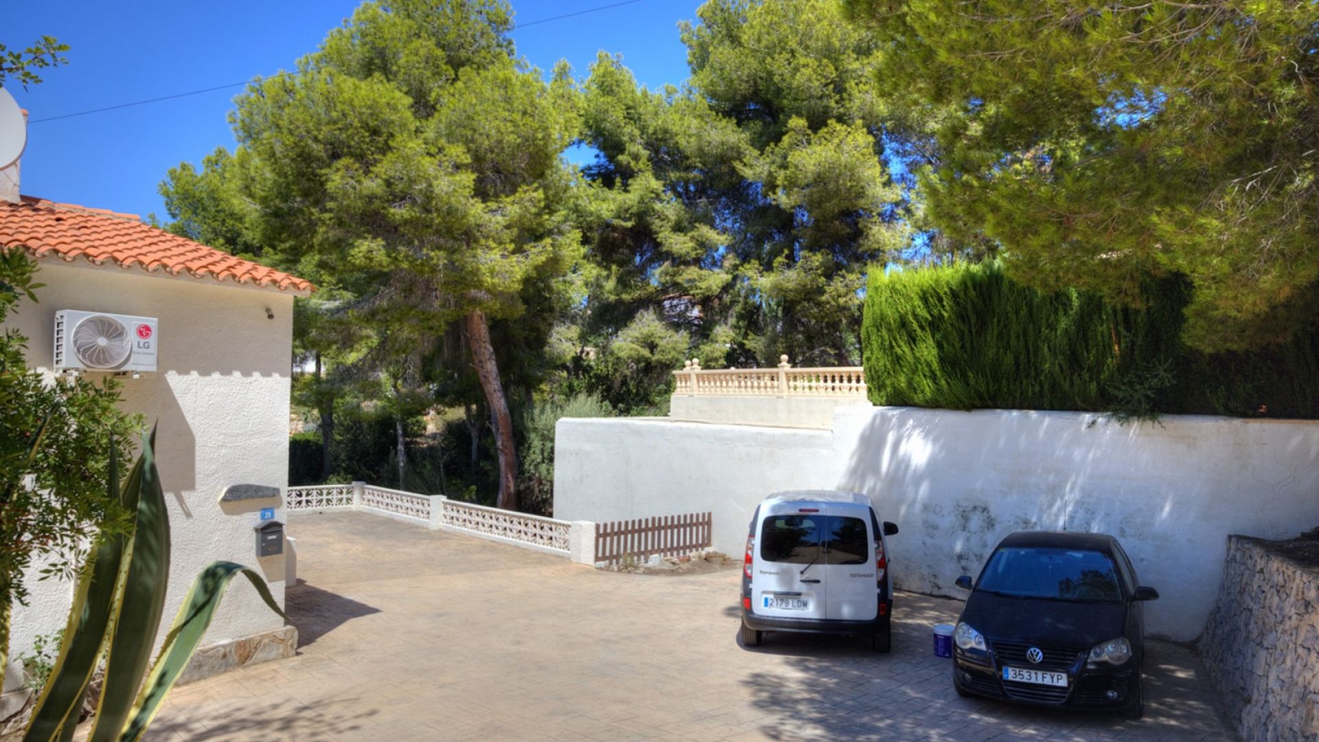Villa de golf en première ligne à San Jaime, Moraira – Appartement d'amis et piscineVilla traditionnelle de 4 chambres avec vue panoramique sur le terrain de golf, piscine privée et appartement d'amis indépendant. Située sur un terrain de 1 000 m² dans une rue résidentielle calme, à quelques pas des commerces, des restaurants et de la plage de Cala Andrago. Les intérieurs modernisés, le grand parking et les excellents espaces extérieurs en font une maison familiale idéale ou un excellent investissement locatif.Caractéristiques de la propriété :Excellente exposition au soleil et vue imprenable sur le terrain de golf.Parking privé pour plusieurs véhicules.Climatisation réversible dans toutes les chambres.À quelques pas des commerces, des plages et d'un large choix de bars et de restaurants.Emplacement privilégié à San Jaime, à côté du terrain de golf.À propos de cette propriété :Cette charmante villa traditionnelle de quatre chambres bénéficie d'une vue imprenable sur le terrain de golf de San Jaime, offrant un emplacement rare en première ligne dans l'un des endroits les plus prisés de Moraira.Située sur un terrain généreux de 1 000 m², la propriété dispose d'une piscine privée et de terrasses ensoleillées, le tout dans une rue résidentielle paisible. Idéalement située, la villa se trouve à seulement 10 minutes à pied du Club House et du restaurant populaire Dos Toros, à 15 minutes à pied des commerces, des bars à tapas et des restaurants, et à 20 minutes à pied de la magnifique plage de Cala Andrago.La partie principale de la villa se trouve à l'étage supérieur et comprend :Un salon lumineux et ouvert avec une cuisine moderniséeUne salle à manger vitrée avec une vue imprenable sur le terrain de golfDeux chambres doubles et une salle de bainsAu niveau inférieur, avec un accès indépendant, vous trouverez un appartement d'amis spacieux comprenant :Deux chambres doublesUne salle de bains avec douche à l'italienneUn salon et une salle à manger ouverts avec cuisine équipéeUn accès direct à la terrasse de la piscine orientée à l'ouest, parfaite pour profiter du soleil de l'après-midiLes caractéristiques extérieures comprennent :Une piscine privée entourée d'une grande terrasse pour les chaises longuesParking sur le terrain pouvant accueillir plusieurs véhiculesUn débarras de 30 m²La propriété est bien entretenue et a bénéficié de plusieurs améliorations, notamment des portes de sécurité en aluminium, de nouvelles fenêtres à double vitrage dans les chambres à l'étage et la climatisation chaud/froid installée dans toutes les chambres.Cette villa combine un emplacement privilégié face au golf, un logement indépendant pour les invités et un accès à pied aux services, ce qui en fait une résidence permanente, une maison de vacances ou un investissement locatif idéal.