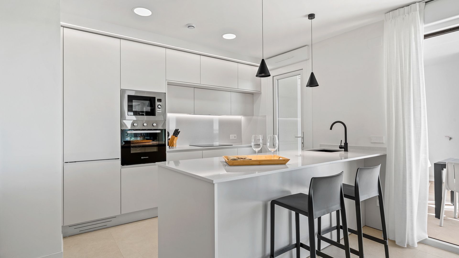 L'intérieur des appartements et penthouses a été conçu pour offrir un confort maximal. Toutes les propriétés sont entièrement meublées, prêtes à emménager. Les sols en grès cérame apportent une touche d'élégance et de durabilité, tandis que les volets électriques et le vidéophone ajoutent un niveau supplémentaire de confort et de sécurité. Les placards intégrés optimisent l'espace de rangement, maintenant l'ordre et la fonctionnalité dans chaque pièce. Avec trois chambres et deux salles de bains, chaque logement est conçu pour répondre aux besoins des familles ou des couples recherchant un espace spacieux et bien agencé.
