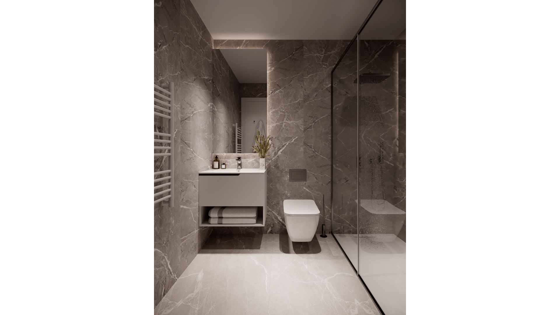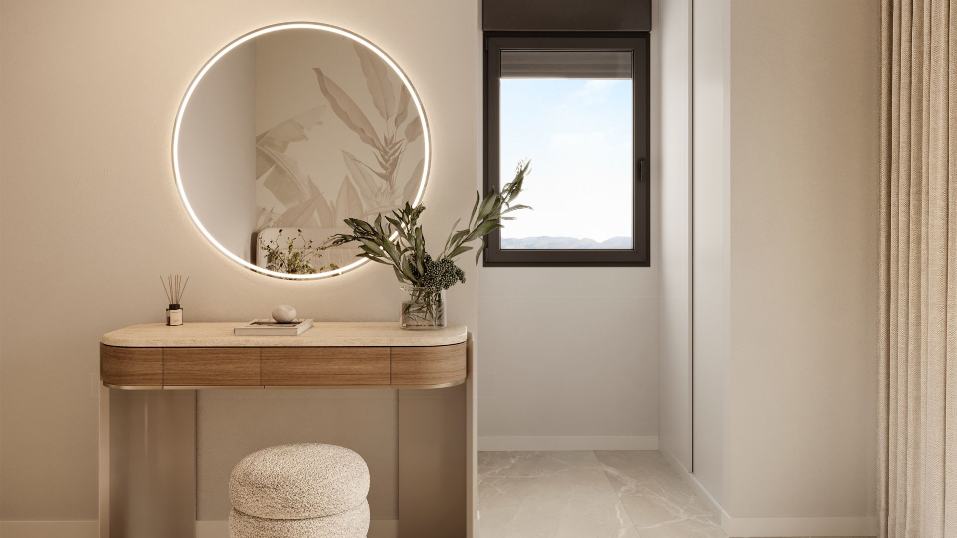 L'intérieur de ces logements est conçu pour offrir une atmosphère chaleureuse et fonctionnelle. Les options de distribution incluent des logements de 2 et 3 chambres, tous avec 2 salles de bains, ce qui les rend idéaux pour les familles comme pour les couples. Les finitions de haute qualité, telles que les sols en grès cérame et les appareils intégrés, assurent un environnement moderne et élégant. Les placards intégrés offrent un rangement efficace, tandis que les volets électriques et le vidéophone ajoutent une touche de confort et de sécurité à chaque maison.