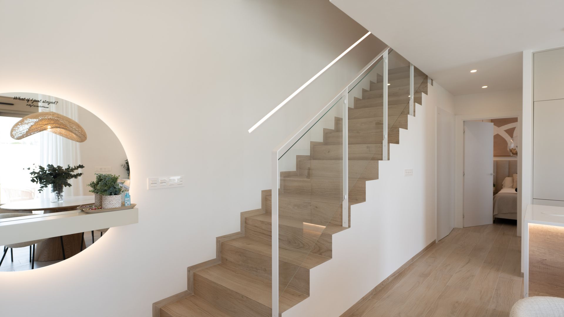 L'intérieur des maisons mitoyennes est conçu pour offrir un maximum de confort et de fonctionnalité. Avec trois chambres et deux salles de bains, chaque espace est optimisé pour le bien-être des résidents. Les sols en grès cérame apportent une touche d'élégance et sont faciles à entretenir. La cuisine est équipée d'appareils modernes, facilitant les tâches quotidiennes. Le système de climatisation garantit une température agréable tout au long de l'année. Les volets électriques et l'interphone vidéo ajoutent un niveau supplémentaire de confort et de sécurité. Les placards intégrés dans les chambres offrent un vaste espace de rangement, maintenant l'ordre et l'organisation.