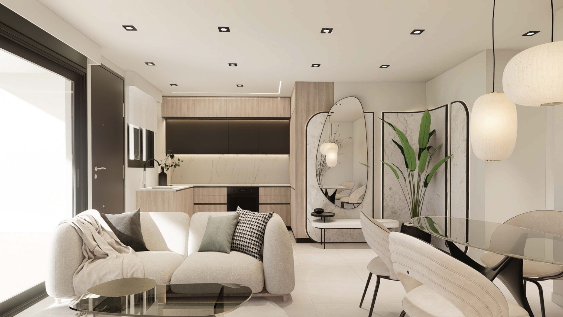De appartementen op de begane grond hebben grote privétuinen waar je het hele jaar door van het klimaat kunt genieten. De duplexen op de bovenste verdieping hebben zonnige balkons en spectaculaire dakterrassen, ideaal om te genieten van het onbelemmerde uitzicht op de omgeving of om te ontspannen in de mediterrane zon. De hele omgeving is ontworpen om harmonieus te integreren met het licht en de open lucht, waardoor elke hoek een leefruimte wordt.