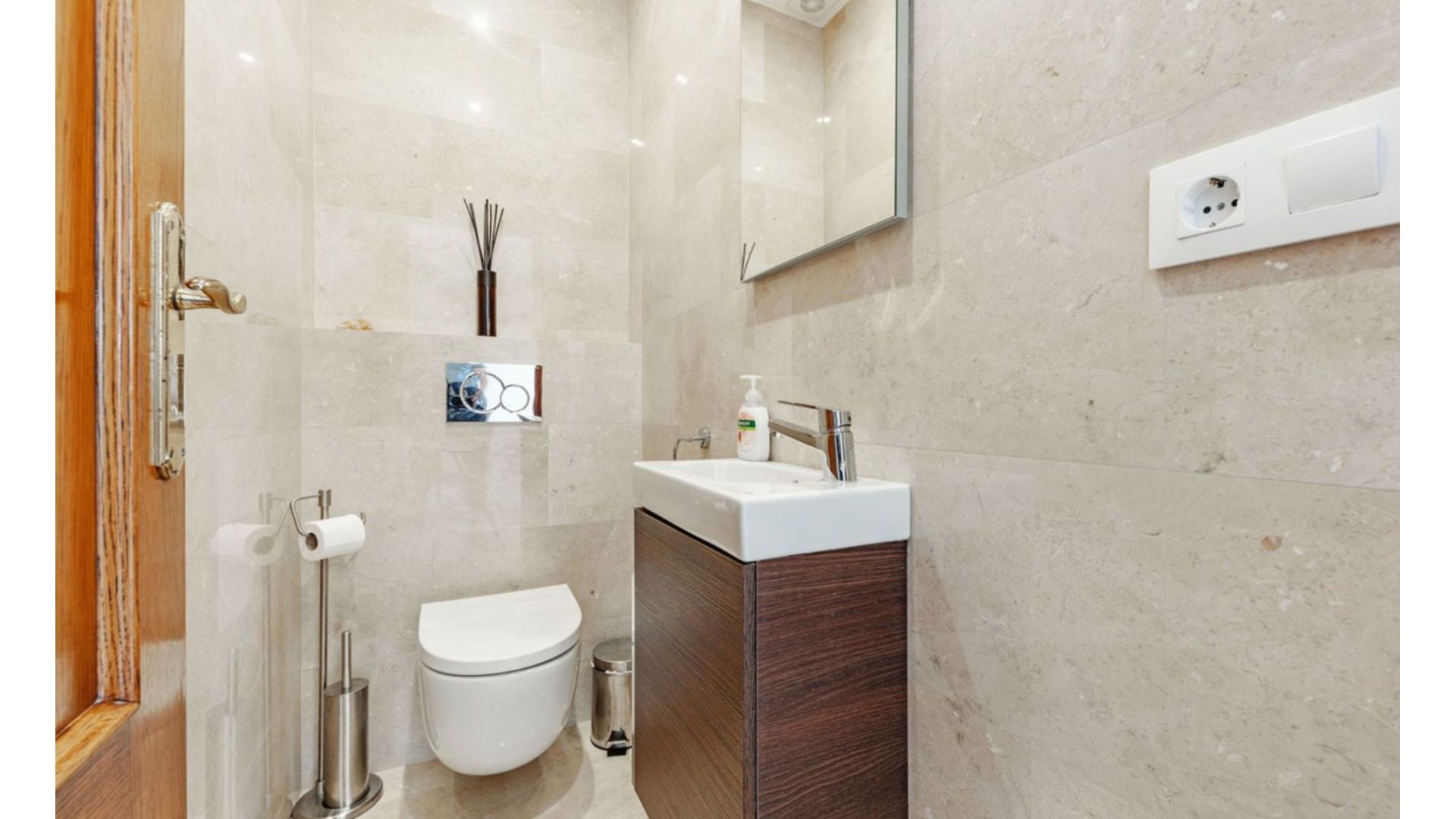 Op deze verdieping bevindt zich ook een gastentoilet en een volledig onafhankelijk gastenappartement — ideaal voor gasten of als investering voor vakantieverhuur.
