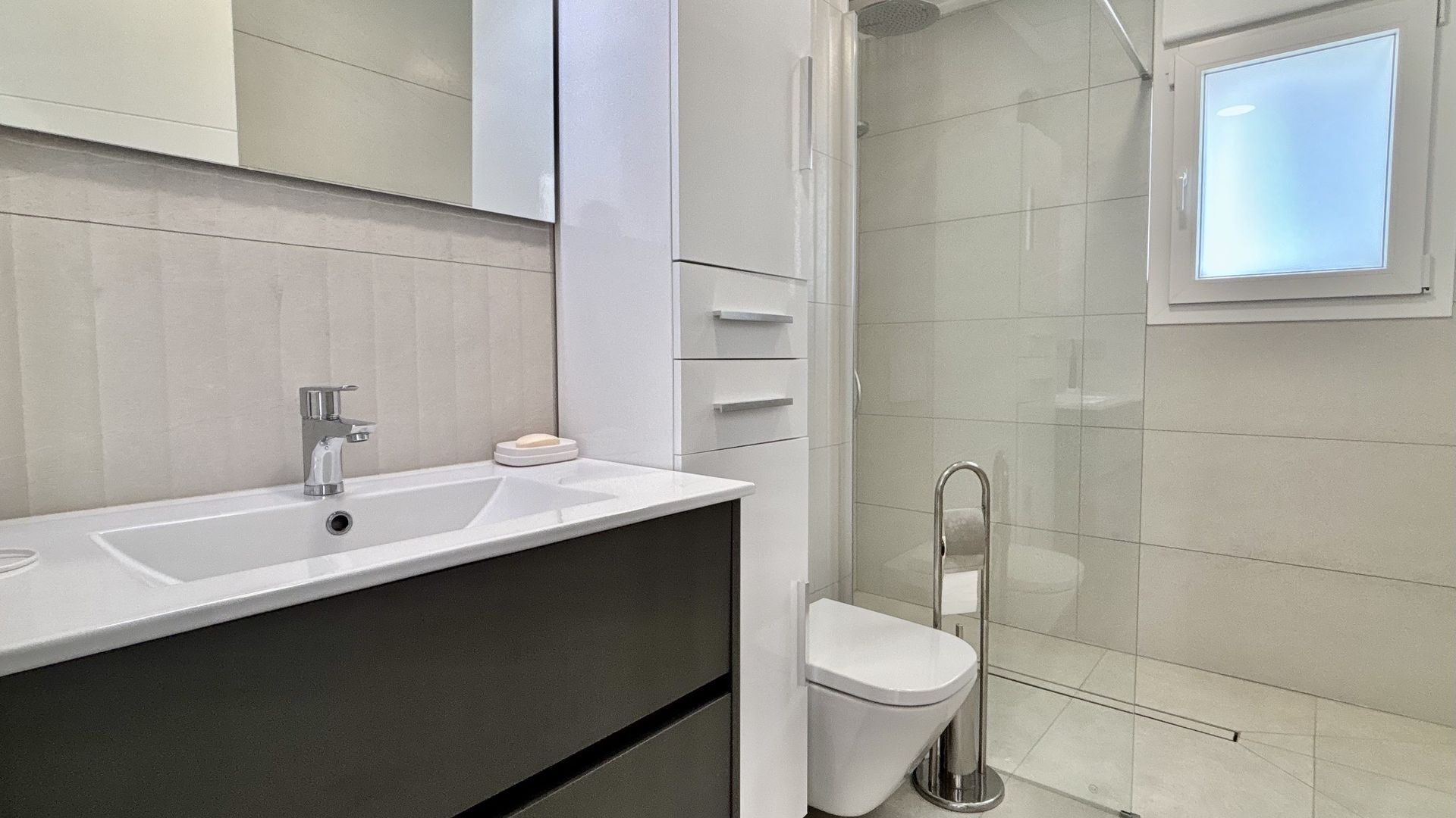 Het interieur van de woning is ontworpen om maximaal comfort en functionaliteit te bieden. De vloeren van porseleinen tegels geven een vleugje elegantie en zijn gemakkelijk te onderhouden. De keuken is uitgerust met moderne apparatuur, wat de dagelijkse taken vergemakkelijkt en het koken thuis aangenaam maakt. Ingebouwde kasten in de slaapkamers bieden veel opbergruimte en zorgen voor orde en organisatie. Elk detail is zorgvuldig overwogen om een gezellig en praktisch huis te creëren.