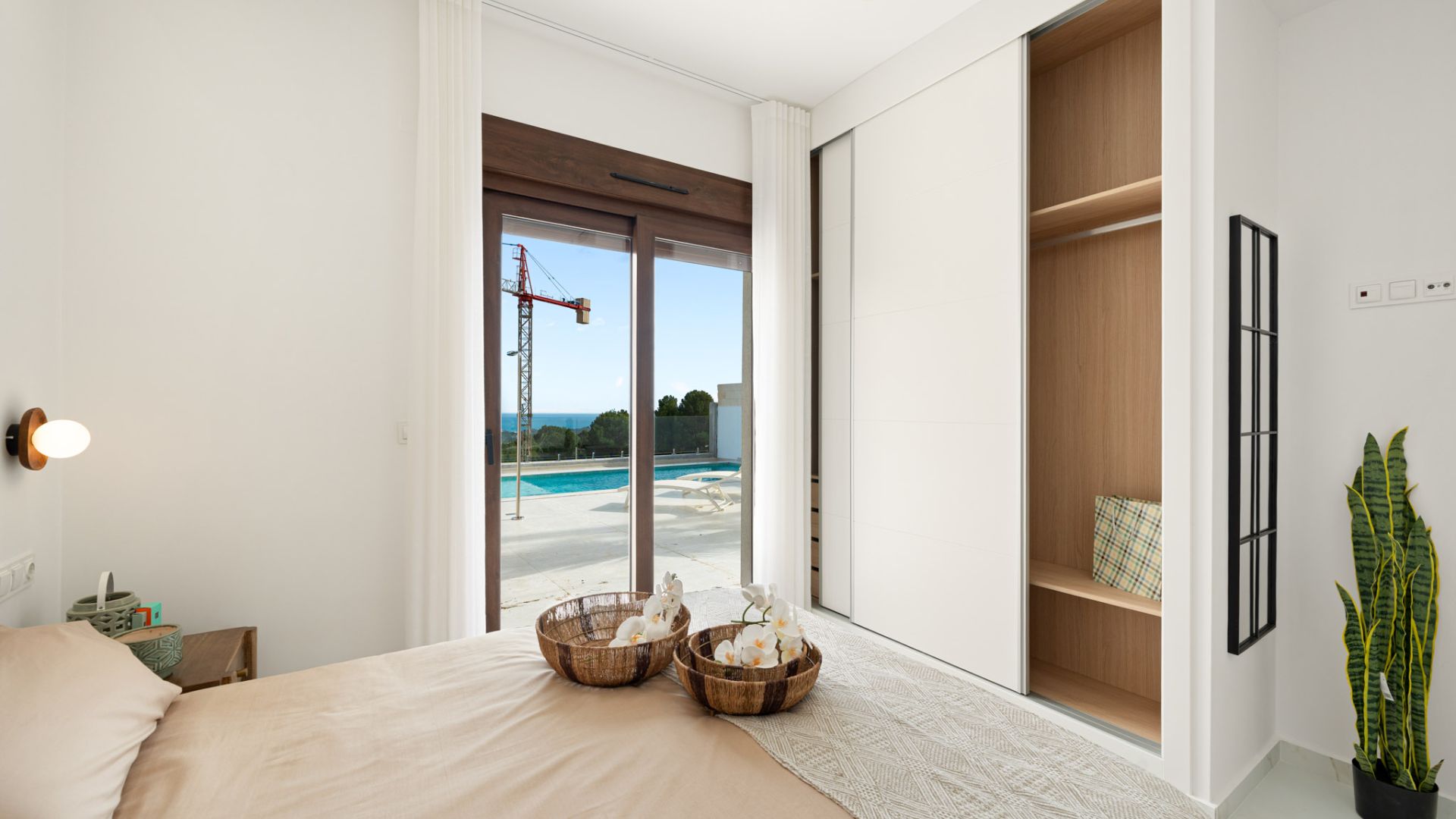 De woningen vallen op door hun zorgvuldig ontworpen buitenruimtes. Elke woning heeft een privé tuin, perfect om te genieten van de buitenlucht en ontspannende momenten met familie of vrienden. Bovendien bieden de terrassen extra ruimte om te genieten van het mediterrane klimaat en het indrukwekkende uitzicht op zee. Voor degenen die op zoek zijn naar een extra vleugje luxe, is er de optie om een solarium toe te voegen, ideaal om in volledige privacy van de zon te genieten. De aanwezigheid van een privézwembad in elke woning voegt een element van exclusiviteit en comfort toe, waardoor u kunt genieten van verfrissende duiken tijdens de warme zomerdagen.