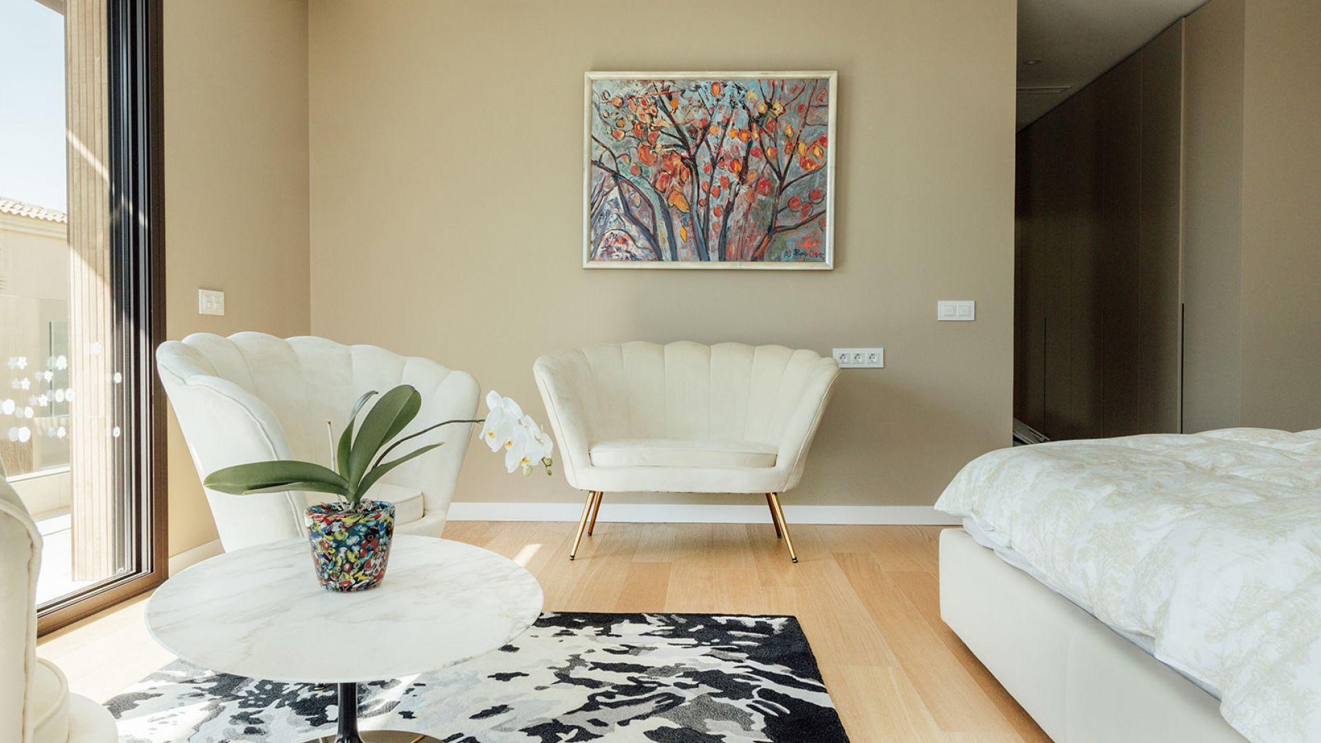 Drie ruime tweepersoonsslaapkamers en een kinderkamer. Twee slaapkamers beschikken over inbouwkasten op maat en een en-suite badkamer, wat extra privacy en comfort biedt.