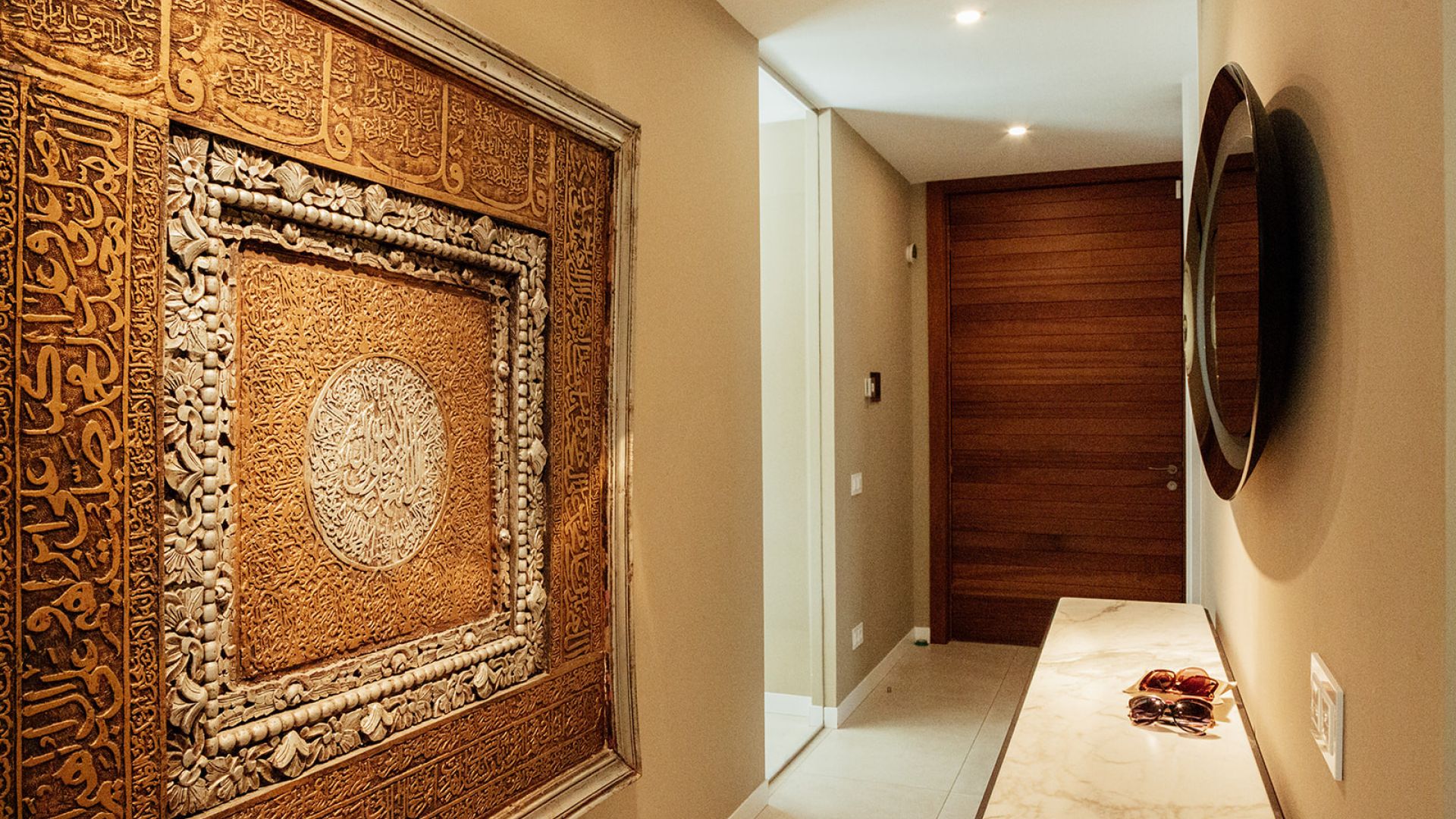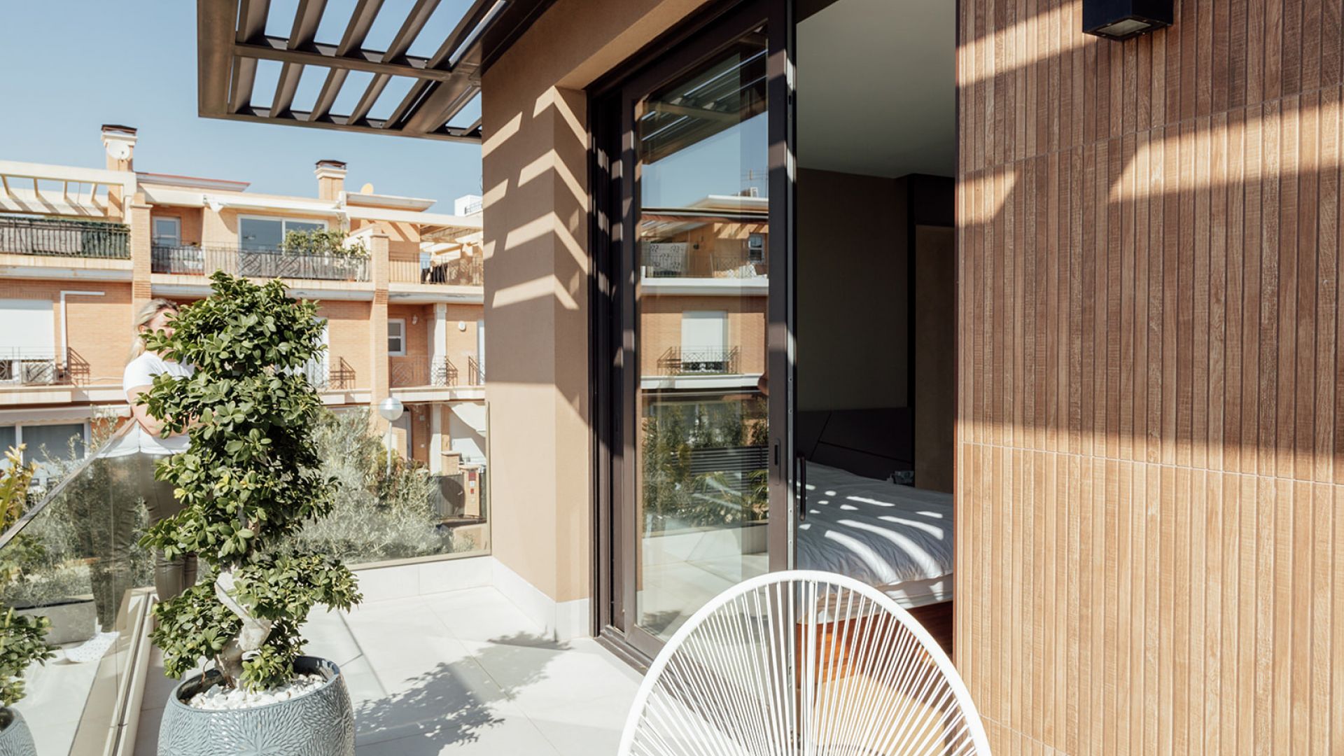 De moderne gevel is speciaal ontworpen om bestand te zijn tegen Saharastof en regen, waardoor de woning haar strakke uitstraling behoudt.