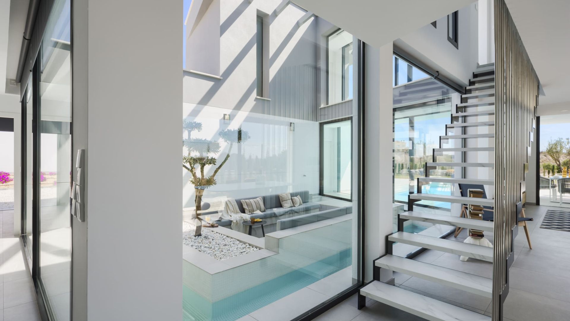 The villas at Altaona Golf Resort stand out for their modern and elegant design, with a plot of 1000 m² that includes a private garden and swimming pool. The spacious terraces and solarium offer ideal spaces to enjoy the Mediterranean climate and panoramic views of the natural surroundings and the golf course. In addition, each villa has a parking space for two vehicles, ensuring comfort and security for residents. The exterior design is designed to blend harmoniously with the landscape, creating an atmosphere of serenity and luxury.