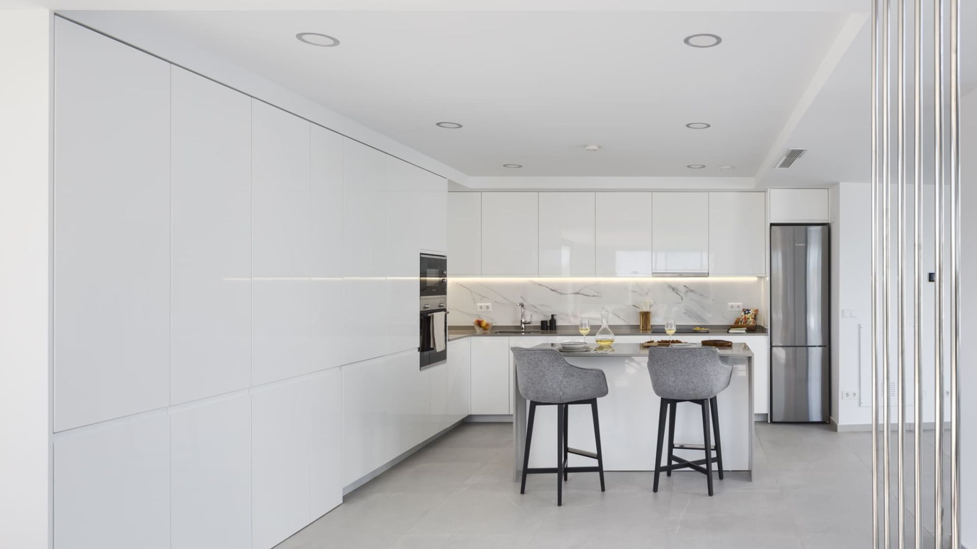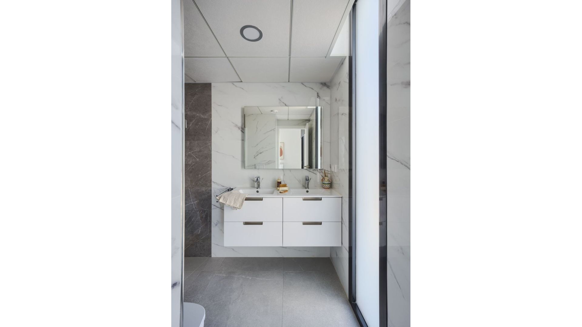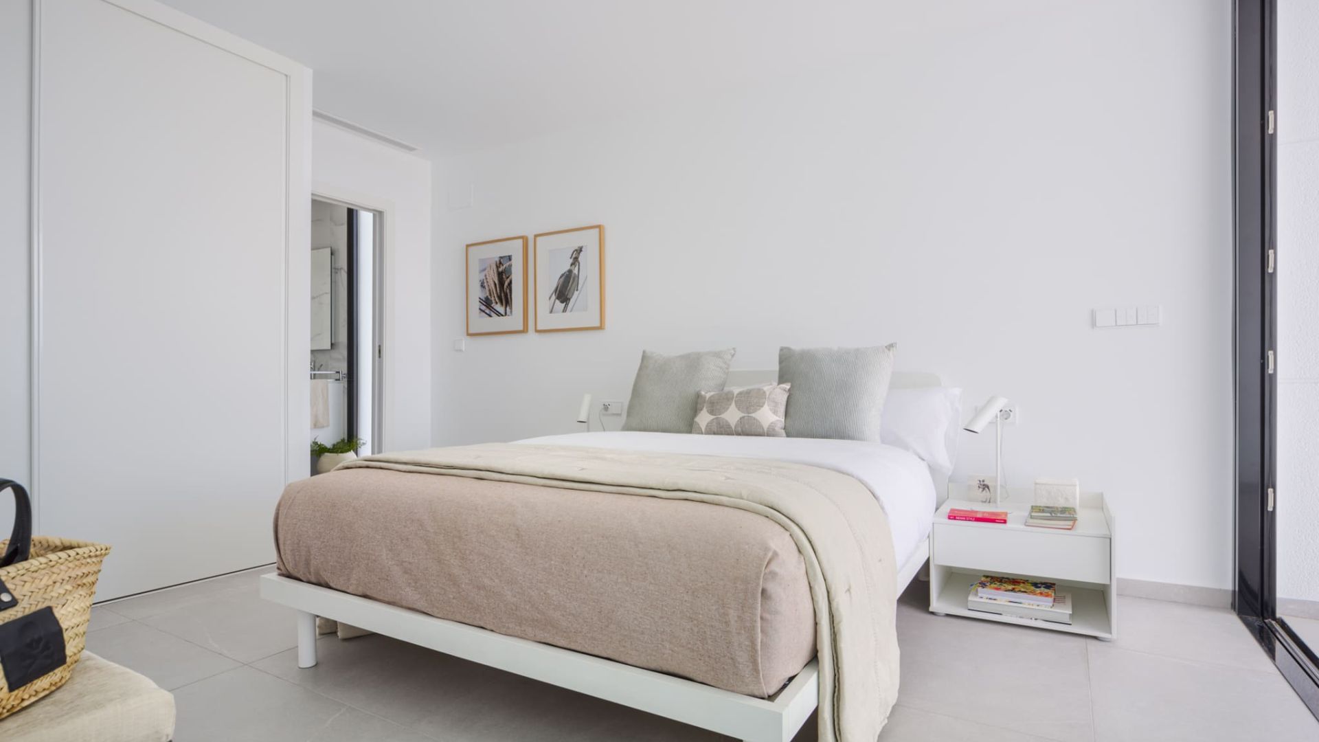 The interior of these luxury villas is designed to maximise comfort and functionality, with a constructed area of 218 m². The properties have 3 double bedrooms, each with their own bathroom, plus an additional guest toilet. The open plan kitchen integrates seamlessly with the living area, creating a spacious and bright space ideal for family living and entertaining. The basement offers an additional versatile space that can be adapted according to the owner's needs. The high quality finishes and contemporary design ensure that every detail is designed for the comfort and well-being of the residents.