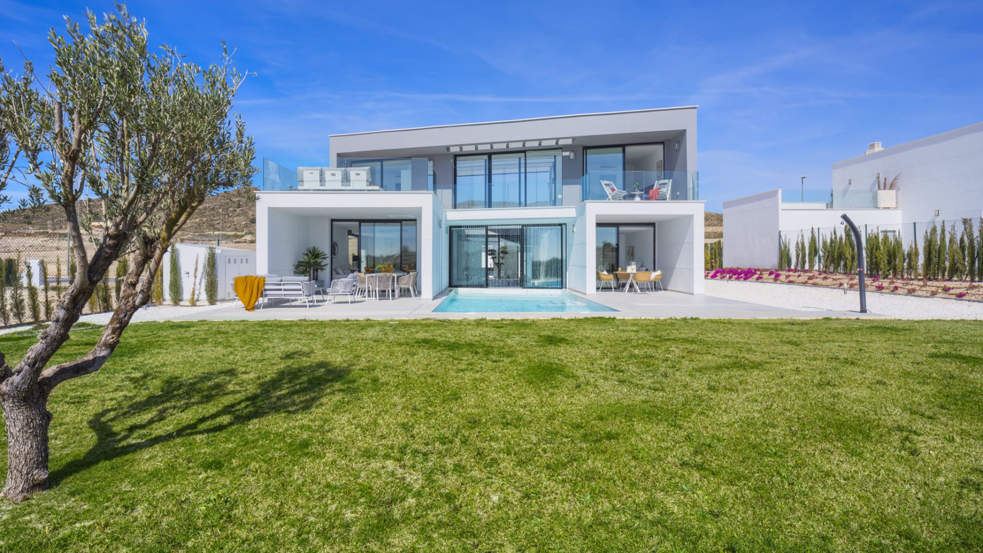 Discover the stunning new build villas in the exclusive Altaona Golf Resort, Murcia. This development offers a unique opportunity to live in a privileged setting, surrounded by nature and mountains, just 15 minutes drive from the centre of Murcia and 20 minutes from the region's beautiful beaches. The villas are designed to offer an exceptional quality of life, combining open spaces, fresh air and tranquillity, without renouncing the proximity of all necessary services. These luxury homes are ideal for those seeking a sophisticated Mediterranean lifestyle.