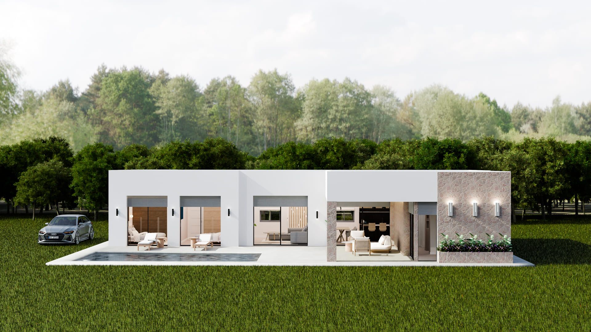 Discover our exclusive new build villas in Pinoso, designed to offer luxury and comfort in a charming rural setting. These modern detached villas are available on spacious rustic or urban plots, allowing you to customise the space to suit your preferences. With 3 bedrooms, 2 full bathrooms and 2 toilets, these villas are equipped with all the necessary amenities, including air conditioning, fully fitted kitchen, private swimming pool and solar panels. Construction is delivered within 8 months from the granting of the building permit, with a self-promotion process that ensures transparent and efficient management of your investment.
