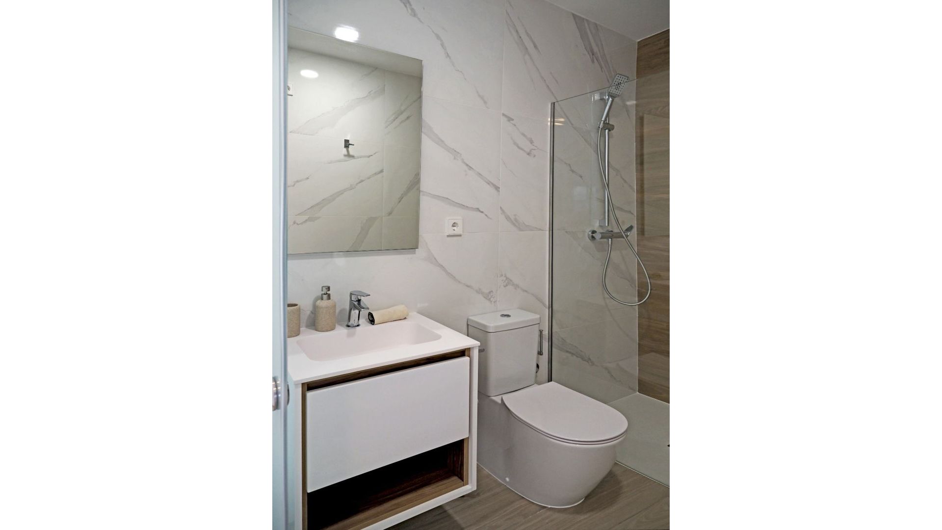 The interior has a modern and functional design, with white lacquered doors and fitted wardrobes with sliding doors. The flooring is of high quality porcelain with thermo-acoustic properties. The kitchen is fitted with matt white units and Silestone or similar type quartz worktops. The bathrooms have mixer taps, white wall units and shower screens.