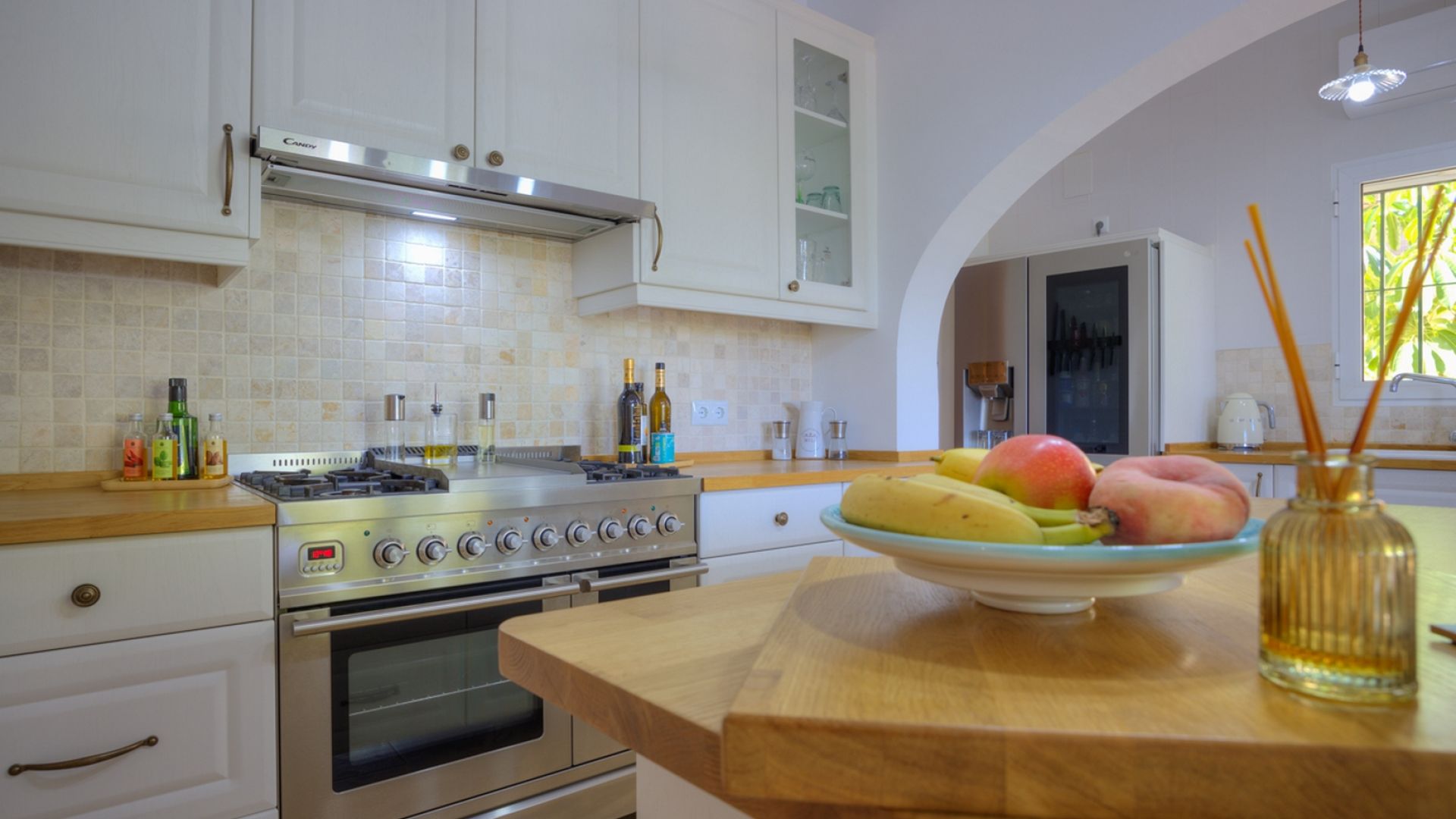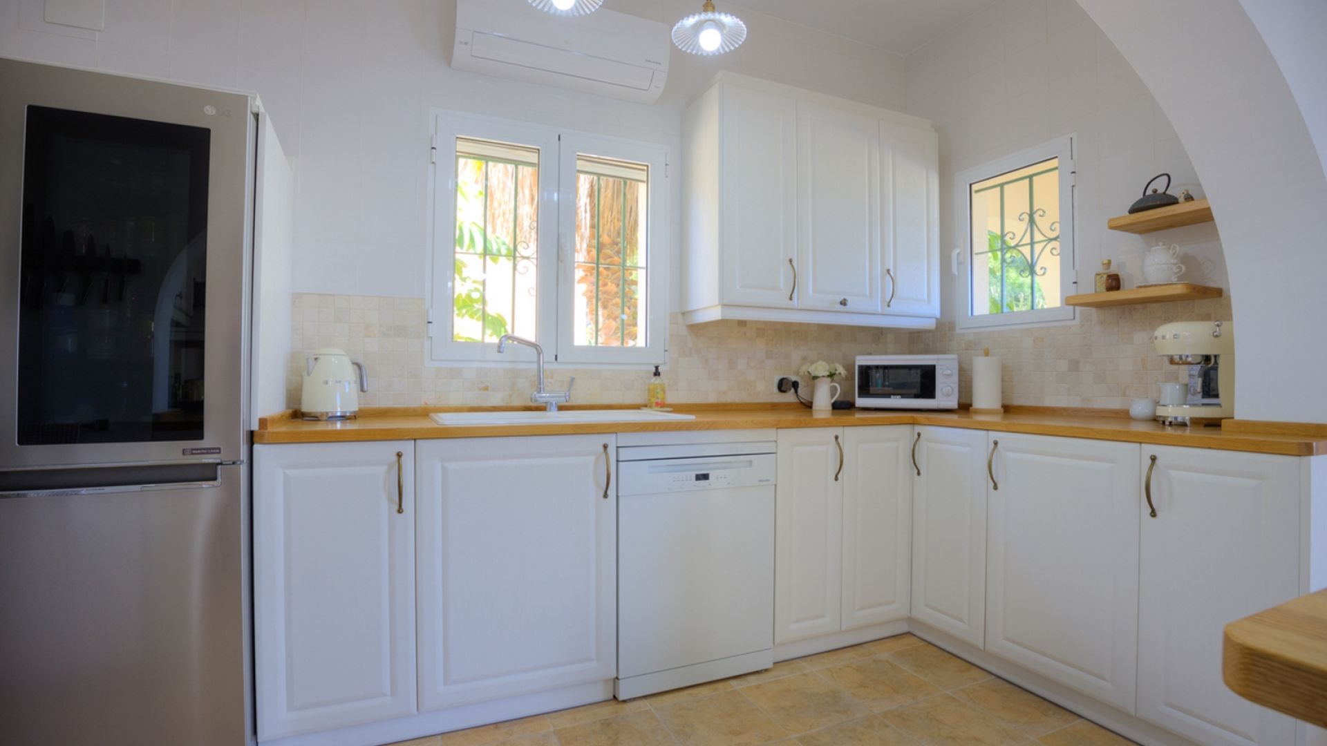 Luxury Villa for Sale in Sabatera, Moraira - Walking Distance to AmenitiesDiscover this beautifully presented luxury villa for sale in the sought-after area of Sabatera, Moraira. Perfectly located within a short stroll of all amenities, the property is just minutes away from a supermarket, two artisan bakeries, and a wide choice of bars and restaurants. Moraira town centre and the stunning sandy beaches are only a 15-minute walk from your doorstep.The villa offers nearly 300 m² of immaculate living space, thoughtfully distributed across two floors connected by an elegant internal staircase.On the ground floor, you'll find spacious open-plan living with an interlinked lounge, dining area, and modern kitchen that flow seamlessly to both front and rear terraces as well as the pool area. A separate guest wing with direct pool access provides excellent privacy, featuring three generously sized double bedrooms, each with its own en-suite bathroom. Completing the ground level are a utility/laundry room, guest toilet, and a small garage.Property Features: Nearly 300 m² of living space distributed over two floors Spacious open-plan lounge, dining and kitchen areas with seamless access to terraces and pool Four double bedrooms, all with en-suite bathrooms. Utility/laundry room, guest toilet, and garage Internal staircase connecting both levels External storage plus a workshop. Fully air-conditioned (hot and cold in all rooms)Open views bordering a green zone in Moraira Outside, the villa is designed for year-round Mediterranean living. Enjoy a covered poolside porch with lounge and dining areas, a sunny terrace with pergola, and a 10-metre heated swimming pool. For entertaining, there's a fully equipped summer kitchen with bar and barbecue, perfect for al fresco dining with family and friends.Outdoor Living: Large 10-metre heated swimming pool with sunny terrace and pergola Covered poolside porch with lounge and dining areas Summer kitchen with bar and barbecue – perfect for entertaining Low-maintenance Mediterranean gardens This villa for sale in Sabatera, Moraira is a rare opportunity to own a high-quality home in one of the most desirable areas on the Costa Blanca. With spacious interiors, excellent outdoor living spaces, and a prime location close to the beach and town centre, it's an ideal choice for families, retirees, or investors.Don't miss out on this exceptional property for sale in Moraira – contact us today to arrange a viewing.