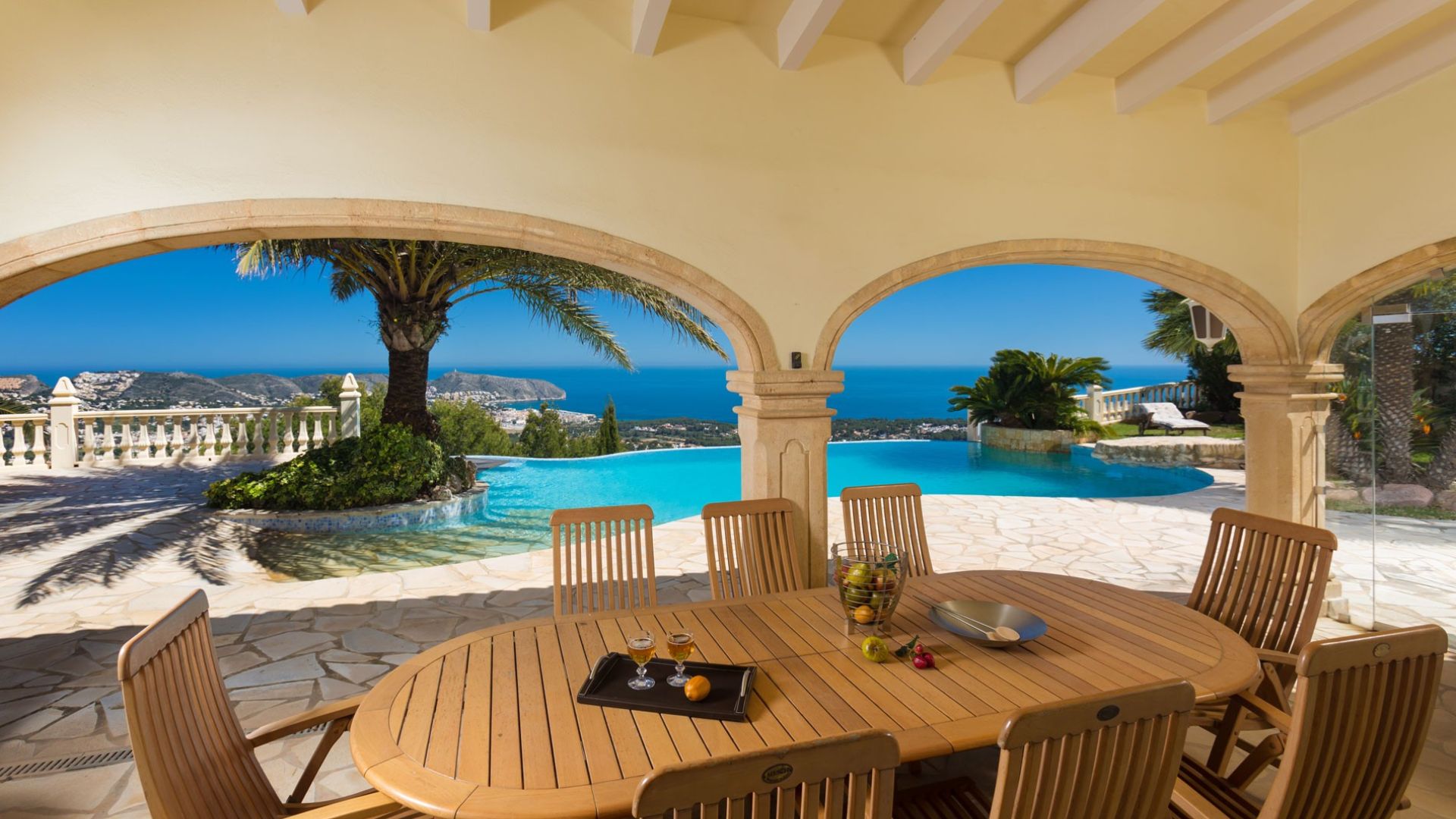 Exquisite modern luxury villa located in the prestigious area of Benimeit, Moraira, offering breathtaking panoramic sea views. This outstanding property features a built area of 407 m² set on a 1,040 m² plot, designed to provide maximum comfort, style, and privacy. ✨ Key Features: 4 spacious bedrooms 3 elegant bathrooms Bright and open-plan living and dining area Fully equipped modern kitchen with high-quality finishes Private gym Closed garage Infinity pool with stunning sea views Beautifully landscaped Mediterranean garden The villa is equipped with all modern comforts, including air conditioning, underfloor heating, and premium materials throughout. An ideal home to enjoy the Mediterranean lifestyle in one of the most exclusive areas of the Costa Blanca.
