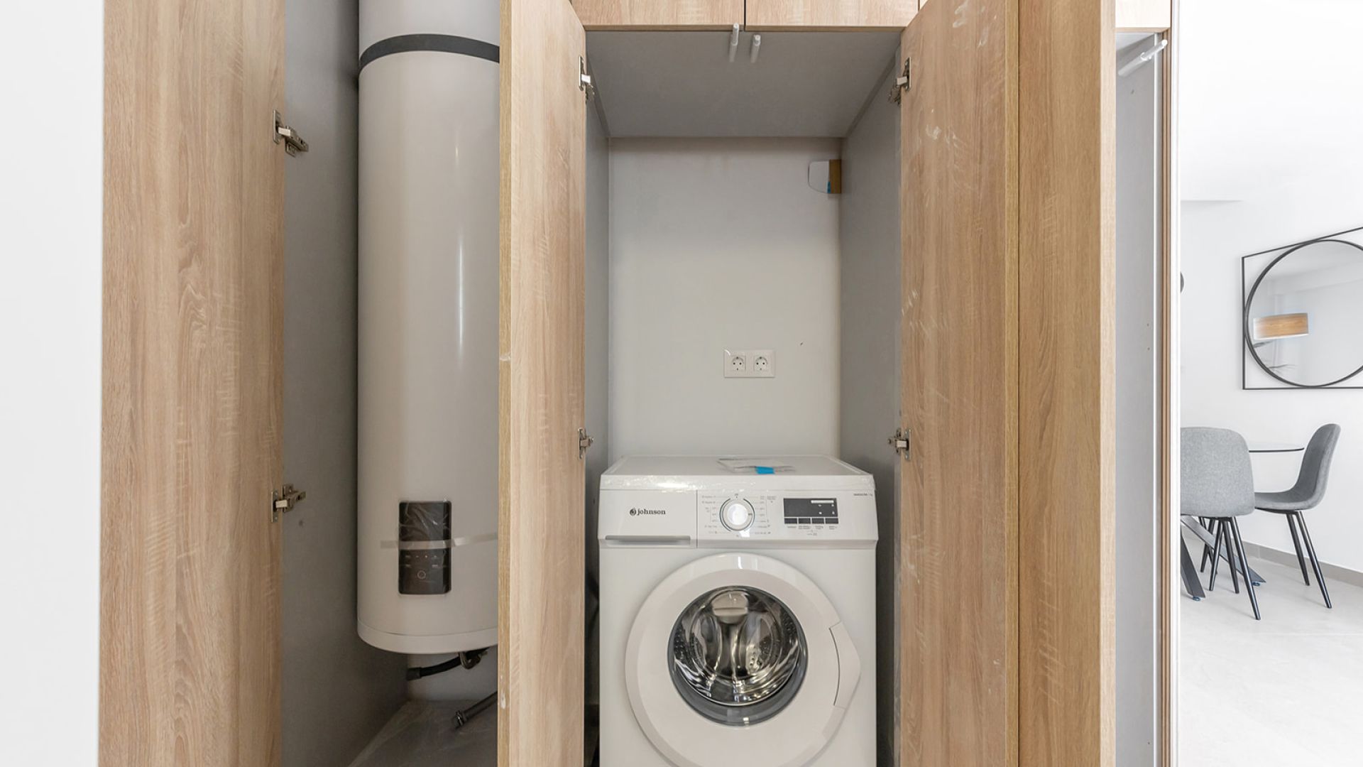 The interiors of the townhouses in Rafal are designed to offer comfort and modernity. Porcelain tile floors provide an elegant touch and are easy to maintain, while electric shutters add convenience and energy efficiency. Built-in wardrobes in the bedrooms offer ample storage space, keeping the resting areas tidy and clutter-free. The pre-installation for air conditioning ensures that the homes are ready for climate control systems, allowing residents to enjoy a cool and comfortable environment during the warmer months. The layout of the homes, with options for 3 and 4 bedrooms and 2 bathrooms, is designed to offer a functional and adaptable space to meet the needs of each family.