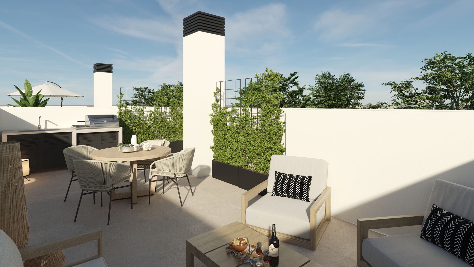 The townhouses in Dolores stand out for their carefully designed outdoor spaces. Each home includes a terrace, a perfect place to enjoy the Mediterranean climate, whether for outdoor relaxation, hosting dinners with friends, or simply enjoying a moment of tranquility. Additionally, the properties feature a solarium, offering additional space for sunbathing or creating a rooftop garden. These outdoor elements not only extend the living space but also add significant value to the lifestyle, allowing residents to enjoy outdoor living from the comfort of their home.