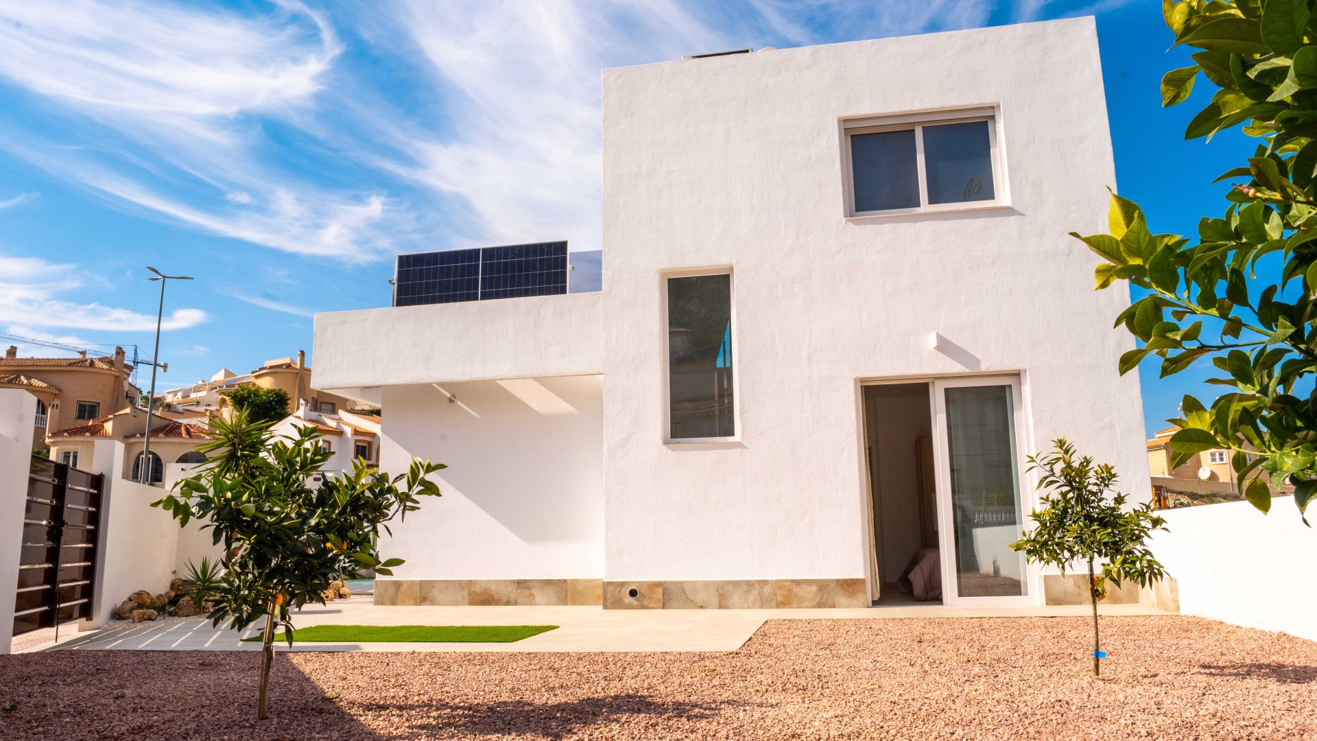 Das Innere der Villa ist so gestaltet, dass es ein Maximum an Komfort und Funktionalität bietet. Mit 98m² gebaut und 90m² nutzbar, hat das Anwesen 3 Schlafzimmer und 2 moderne Bäder. Der offene Grundriss des Wohn-Esszimmers und der Küche bietet einen geräumigen und hellen Raum, ideal für das tägliche Leben und die Unterhaltung. Hochwertige Oberflächen und moderne Details sorgen für ein stilvolles und einladendes Ambiente. Die vorinstallierte Klimaanlage sorgt das ganze Jahr über für ein optimales Raumklima. Die Villa verfügt auch über einen Grill, perfekt für Mahlzeiten im Freien.