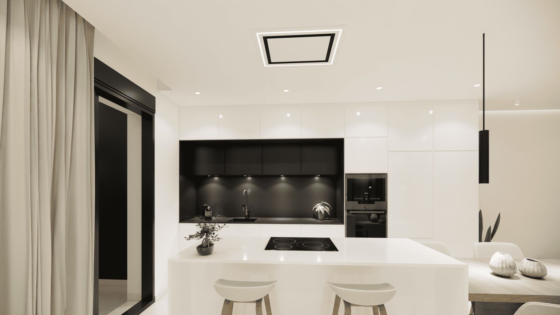 Das Innere der Reihenhäuser ist sorgfältig gestaltet, um Komfort und Stil zu bieten. Mit drei Schlafzimmern und drei Bädern ist jede Wohnung ausgestattet, um den Bedürfnissen von Familien oder Paaren gerecht zu werden, die Raum und Privatsphäre suchen. Die Böden aus Feinsteinzeug verleihen einen modernen Touch und sind pflegeleicht, während die Einbauschränke in den Schlafzimmern praktische und elegante Aufbewahrungslösungen bieten. Die Raumaufteilung umfasst eine Garage, die einen sicheren Platz für das Fahrzeug und zusätzlichen Stauraum bietet.