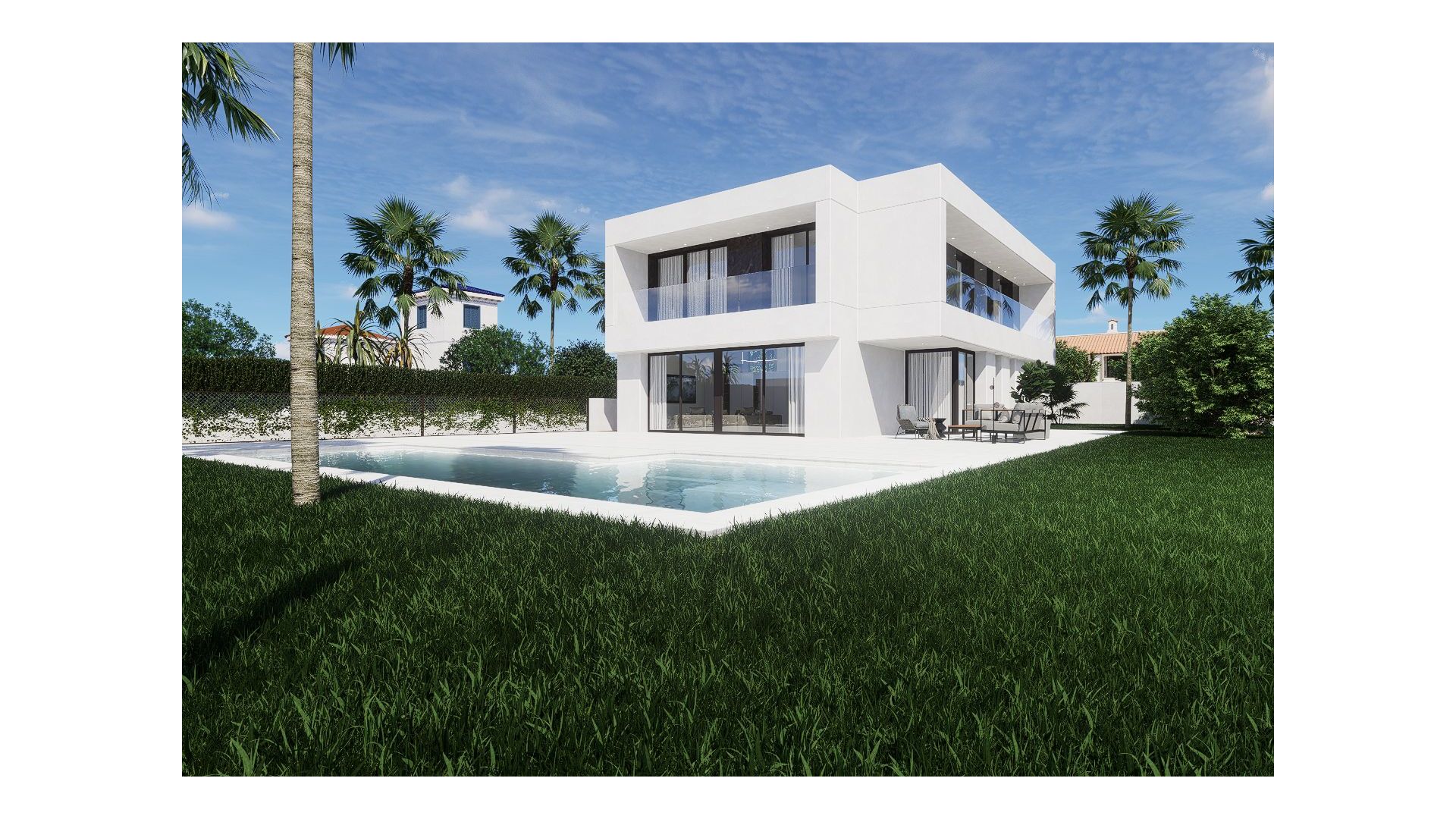 Die Villa beeindruckt durch klare Linien, offene Räume und viel Tageslicht. Auf einem Grundstück von 671 m² bietet sie die perfekte Balance zwischen Privatsphäre und Offenheit.