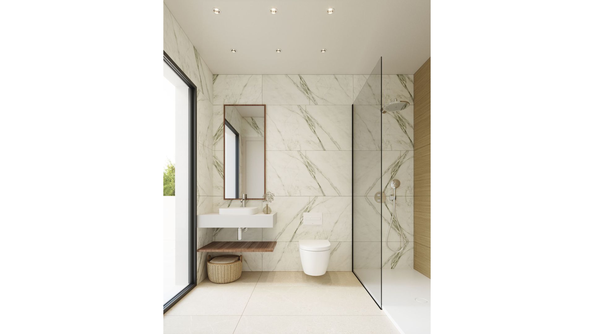 Las villas cuentan con una superficie habitable de 224 m² distribuidos en dos plantas, diseñadas para maximizar el espacio y la funcionalidad. El interior incluye un amplio salón que fluye hacia una cocina abierta totalmente equipada, creando un espacio ideal para la convivencia. Con cuatro dormitorios dobles y tres baños con calefacción por suelo radiante, estas villas ofrecen confort y elegancia en cada rincón. Los acabados modernos y los detalles cuidadosamente seleccionados, como los armarios empotrados y el aire acondicionado, aseguran un estilo de vida práctico y sofisticado.