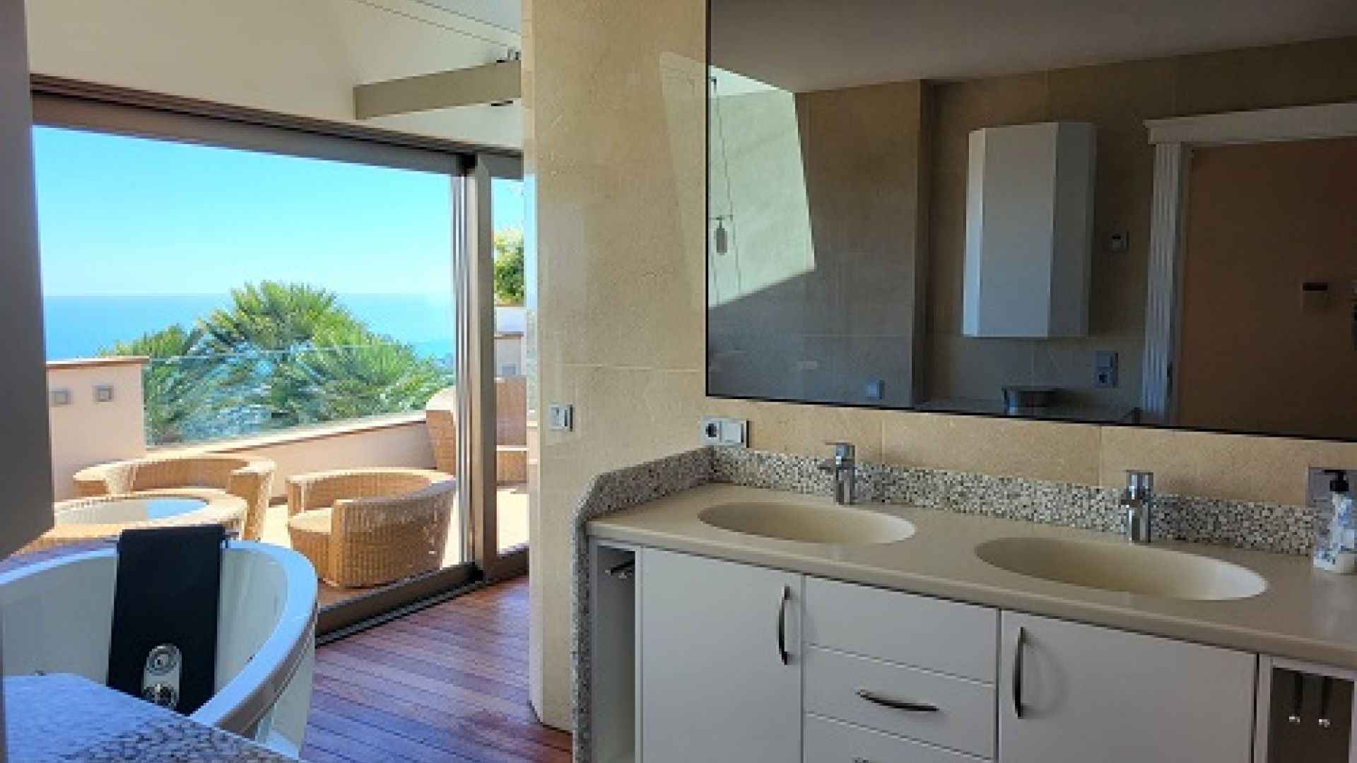 Exclusiva villa moderna en la prestigiosa zona de Benimeit (Moraira), con impresionantes vistas panorámicas al mar. La propiedad cuenta con una superficie construida de 407 m² sobre una amplia parcela de 1.040 m², ofreciendo el máximo confort y privacidad. ✨ Características principales: 4 amplios dormitorios 3 elegantes cuartos de baño Luminoso salón-comedor con acceso directo a la terraza Cocina totalmente equipada con acabados de alta calidad Gimnasio privado Garaje cerrado Piscina infinity con vistas al mar Jardín mediterráneo perfectamente cuidado La villa está equipada con todas las comodidades modernas, incluyendo aire acondicionado, calefacción, y materiales de primera calidad. Una residencia ideal para disfrutar del estilo de vida mediterráneo en una de las zonas más exclusivas de la Costa Blanca.