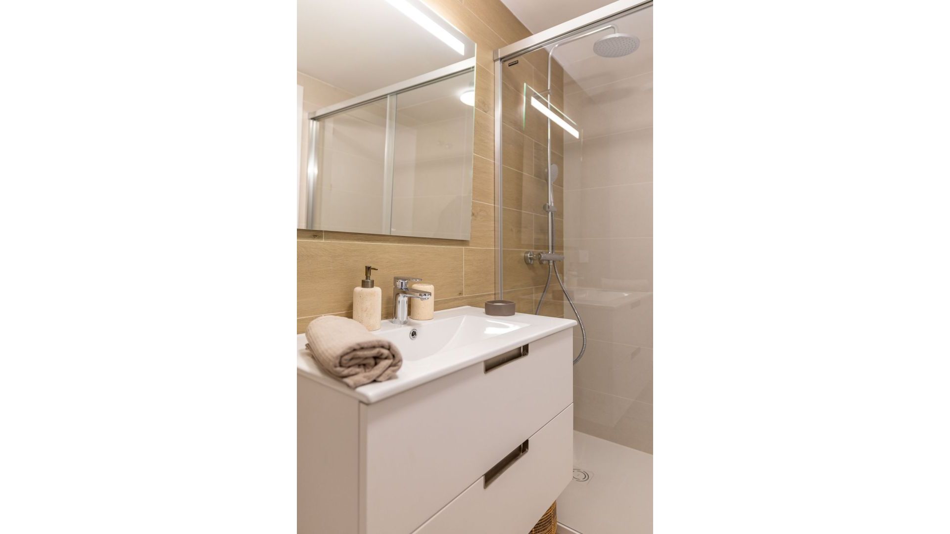 El interior de las viviendas está cuidadosamente diseñado para ofrecer confort y funcionalidad. Los suelos de gres porcelánico aportan un toque de elegancia y durabilidad, mientras que las persianas eléctricas añaden un nivel extra de comodidad. Las cocinas están completamente equipadas con electrodomésticos modernos, facilitando el día a día de los residentes. Los armarios empotrados en los dormitorios proporcionan un amplio espacio de almacenamiento, manteniendo el orden y la organización. Cada detalle ha sido pensado para ofrecer un hogar acogedor y práctico, adaptado a las necesidades contemporáneas.