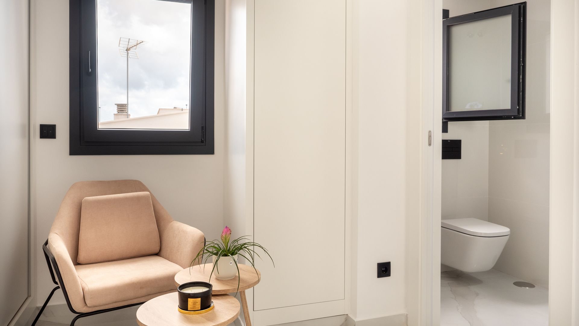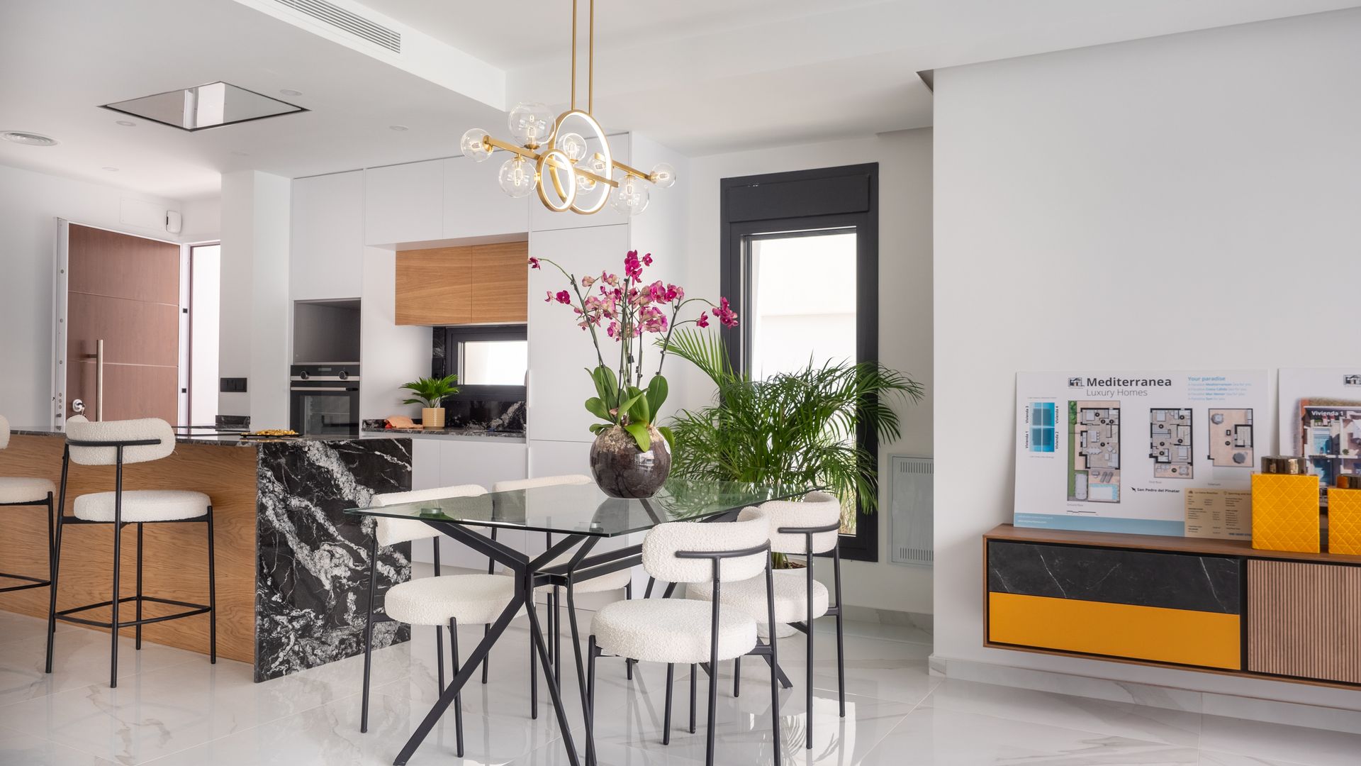 El interior de estas viviendas independientes está equipado con todas las comodidades modernas. Cuentan con tres dormitorios y tres baños, ofreciendo un espacio amplio y funcional para toda la familia. Los suelos de cerámica aportan un toque elegante y son fáciles de mantener. Las viviendas están completamente amuebladas y equipadas con electrodomésticos, lo que facilita la mudanza. Además, incluyen características como calefacción por suelo radiante, preinstalación de aire acondicionado, persianas eléctricas y un videoportero para mayor seguridad. Los armarios empotrados proporcionan un almacenamiento eficiente y ordenado.