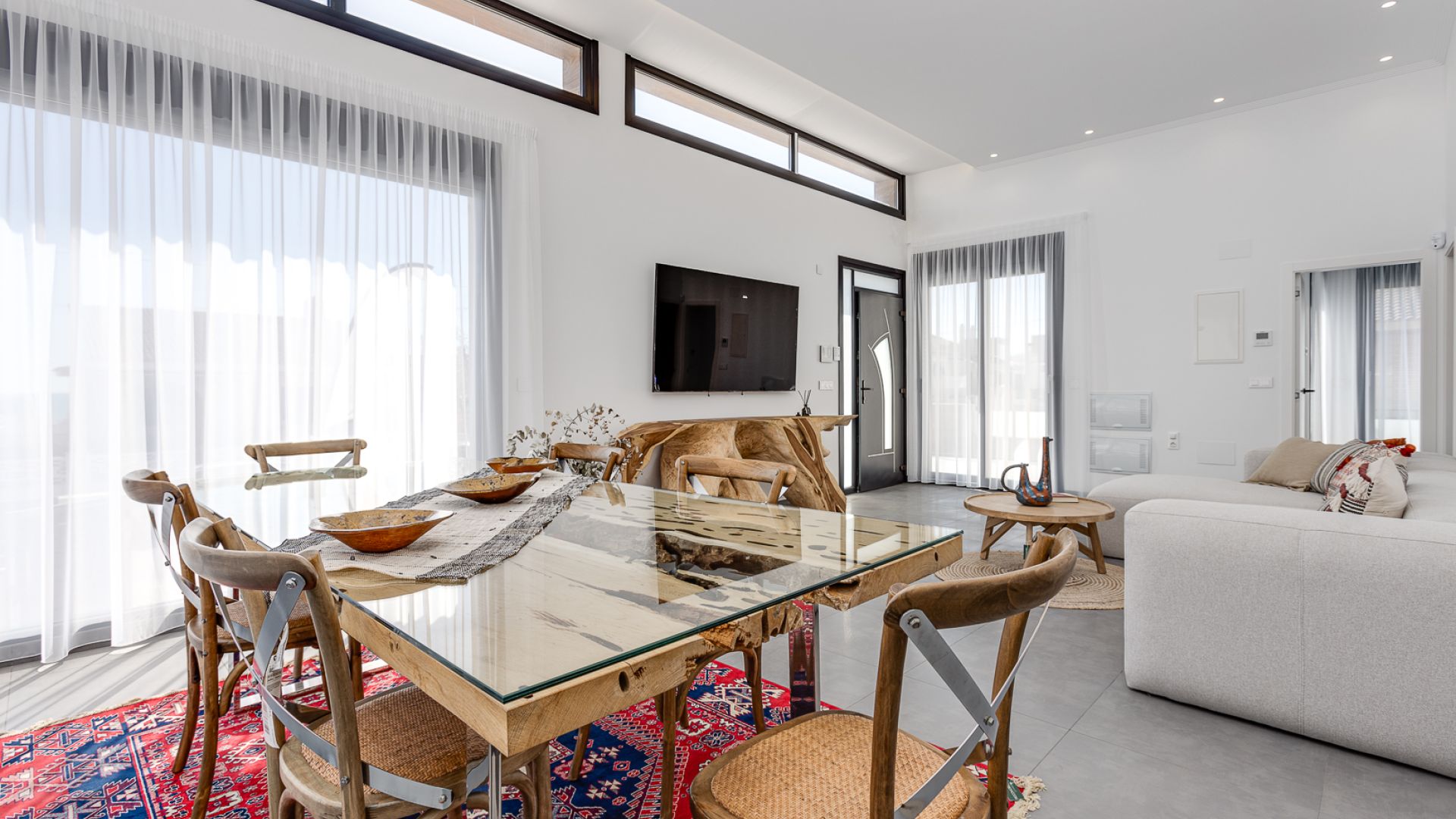 L'intérieur de la villa méditerranéenne de La Mata est conçu pour offrir luxe et confort dans les moindres détails. D'une superficie totale de 310 m², la villa dispose de 4 chambres doubles spacieuses, dont 2 avec salle de bains privative, pour plus d'intimité et de confort. Les 4 salles de bains sont équipées de finitions de haute qualité. La villa dispose de deux salons spacieux offrant une atmosphère agréable pour la vie de tous les jours et les réceptions. La cuisine moderne est conçue pour répondre à tous les besoins culinaires, complétée par un vaste espace de rangement. Les grandes fenêtres laissent entrer une abondance de lumière naturelle, créant une atmosphère lumineuse et accueillante dans toute la maison. Les terrasses accessibles depuis les zones principales offrent des vues à couper le souffle et un flux continu entre l'intérieur et l'extérieur, optimisant l'expérience de vie dans cette villa de rêve.