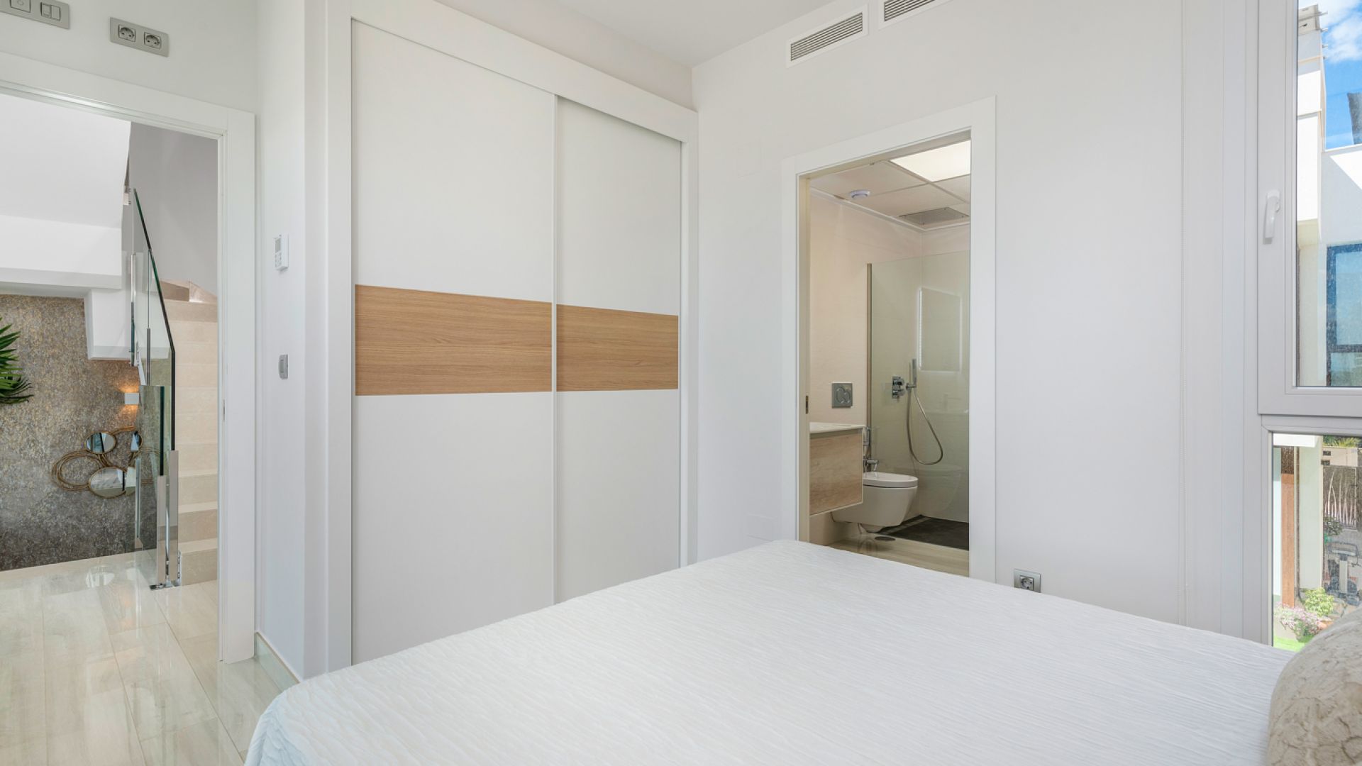 Les maisons ont été spécialement conçues pour l'utilisation et l'agrément de tous les types de personnes et plairont même aux plus exigeants, la terrasse dispose d'une douche extérieure au bord de la piscine, qui a des lumières colorées et une chute d'eau, il y a une borne de recharge pour voiture et la porte est blindée. L'intérieur, créé avec fermeté et style, comprend des chambres à coucher avec des armoires encastrées, des tiroirs et des points TV, tandis que les salles de bains et la cuisine sont meublées. La propriété dispose d'un éclairage LED et d'une pré-installation pour l'air conditionné.