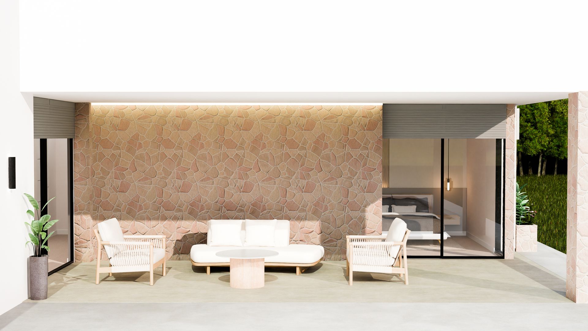 Les villas sont implantées sur des parcelles de 15 658 m², dont 3 000 m² sont clôturés pour offrir un environnement privé et facile à entretenir. Les extérieurs se distinguent par leur design moderne et fonctionnel, avec une porte coulissante motorisée pour faciliter l'accès. Chaque propriété dispose d'une piscine privée, idéale pour profiter du climat méditerranéen, et d'une installation de panneaux solaires qui assure une grande efficacité énergétique avec l'étiquette AA. Les espaces extérieurs sont complétés par une zone de gravier de 1 000 m² autour de la maison, créant ainsi un environnement propre et ordonné.