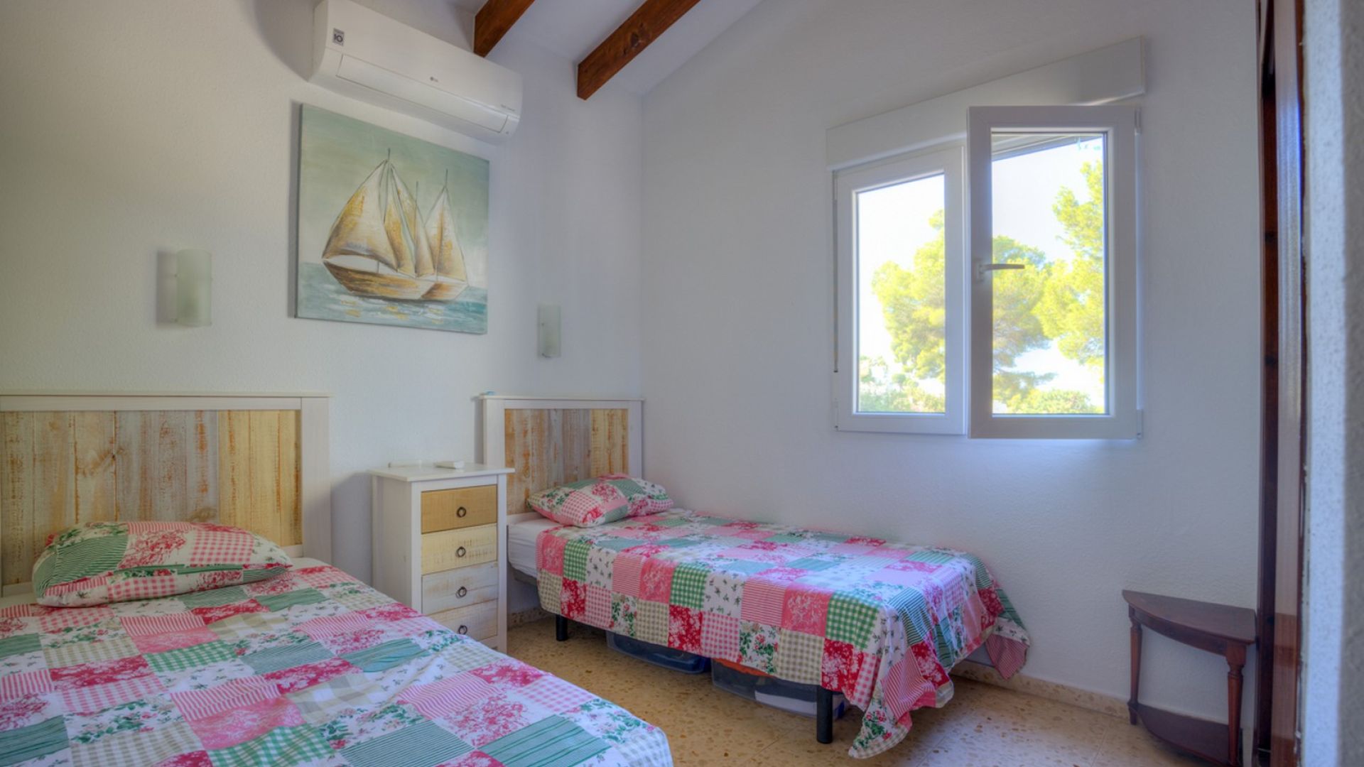 Villa de golf en première ligne à San Jaime, Moraira – Appartement d'amis et piscineVilla traditionnelle de 4 chambres avec vue panoramique sur le terrain de golf, piscine privée et appartement d'amis indépendant. Située sur un terrain de 1 000 m² dans une rue résidentielle calme, à quelques pas des commerces, des restaurants et de la plage de Cala Andrago. Les intérieurs modernisés, le grand parking et les excellents espaces extérieurs en font une maison familiale idéale ou un excellent investissement locatif.Caractéristiques de la propriété :Excellente exposition au soleil et vue imprenable sur le terrain de golf.Parking privé pour plusieurs véhicules.Climatisation réversible dans toutes les chambres.À quelques pas des commerces, des plages et d'un large choix de bars et de restaurants.Emplacement privilégié à San Jaime, à côté du terrain de golf.À propos de cette propriété :Cette charmante villa traditionnelle de quatre chambres bénéficie d'une vue imprenable sur le terrain de golf de San Jaime, offrant un emplacement rare en première ligne dans l'un des endroits les plus prisés de Moraira.Située sur un terrain généreux de 1 000 m², la propriété dispose d'une piscine privée et de terrasses ensoleillées, le tout dans une rue résidentielle paisible. Idéalement située, la villa se trouve à seulement 10 minutes à pied du Club House et du restaurant populaire Dos Toros, à 15 minutes à pied des commerces, des bars à tapas et des restaurants, et à 20 minutes à pied de la magnifique plage de Cala Andrago.La partie principale de la villa se trouve à l'étage supérieur et comprend :Un salon lumineux et ouvert avec une cuisine moderniséeUne salle à manger vitrée avec une vue imprenable sur le terrain de golfDeux chambres doubles et une salle de bainsAu niveau inférieur, avec un accès indépendant, vous trouverez un appartement d'amis spacieux comprenant :Deux chambres doublesUne salle de bains avec douche à l'italienneUn salon et une salle à manger ouverts avec cuisine équipéeUn accès direct à la terrasse de la piscine orientée à l'ouest, parfaite pour profiter du soleil de l'après-midiLes caractéristiques extérieures comprennent :Une piscine privée entourée d'une grande terrasse pour les chaises longuesParking sur le terrain pouvant accueillir plusieurs véhiculesUn débarras de 30 m²La propriété est bien entretenue et a bénéficié de plusieurs améliorations, notamment des portes de sécurité en aluminium, de nouvelles fenêtres à double vitrage dans les chambres à l'étage et la climatisation chaud/froid installée dans toutes les chambres.Cette villa combine un emplacement privilégié face au golf, un logement indépendant pour les invités et un accès à pied aux services, ce qui en fait une résidence permanente, une maison de vacances ou un investissement locatif idéal.