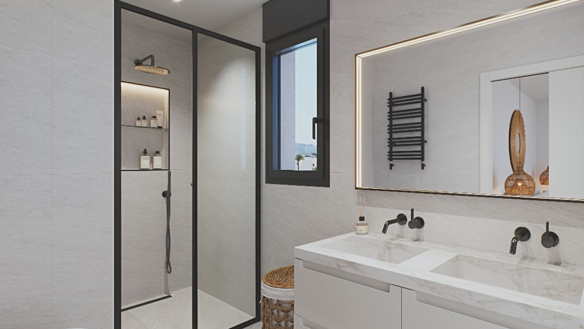 L'intérieur du chalet est conçu pour offrir un maximum de confort et de fonctionnalité. Les quatre chambres sont équipées de placards intégrés, offrant un vaste espace de rangement. La propriété dispose également d'un système de vidéophone, assurant la sécurité et le confort de ses résidents. L'inclusion d'un garage est un atout supplémentaire, offrant un espace sécurisé pour le stationnement des véhicules. De plus, la propriété est préparée pour la recharge des voitures électriques, reflétant un engagement envers la durabilité et la technologie moderne.