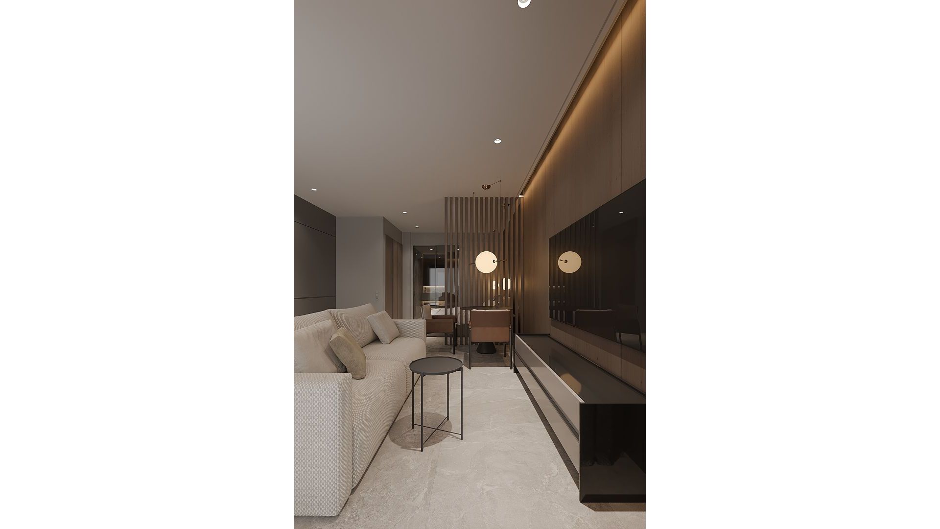 Les intérieurs des appartements sont conçus pour offrir un maximum de confort et de fonctionnalité. Chaque unité dispose d'une chambre et d'une salle de bain, idéales pour les couples ou les personnes recherchant un espace accueillant. Les sols en grès cérame apportent une touche d'élégance et sont faciles à entretenir. Les volets électriques et la climatisation assurent un environnement confortable toute l'année. De plus, les placards intégrés offrent un espace de rangement efficace, maintenant l'ordre et l'organisation dans la maison. La distribution est pensée pour maximiser l'espace disponible, créant une ambiance accueillante et fonctionnelle.
