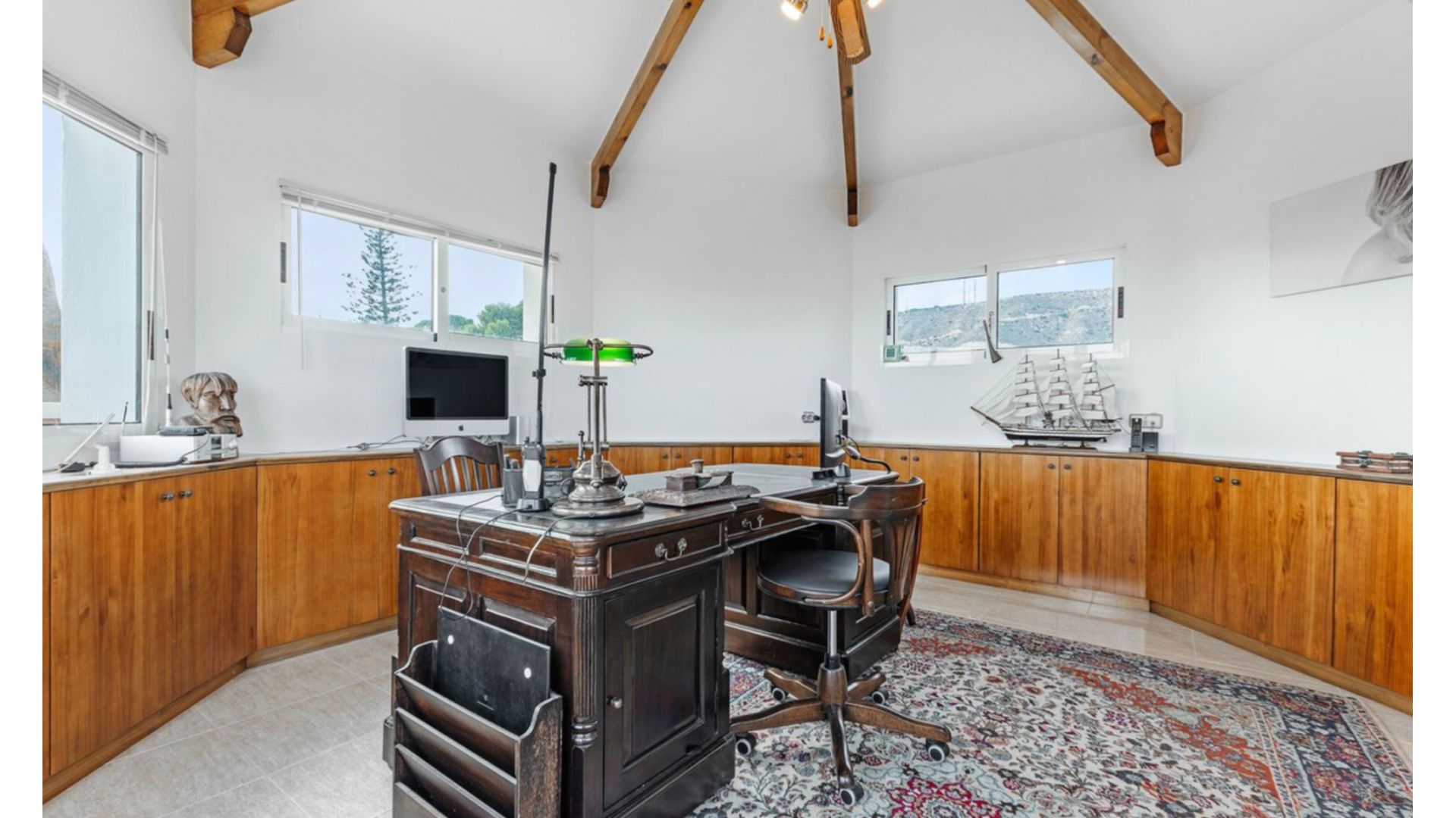 Een unieke achthoekige studeer- of observatieruimte met eigen terras biedt het meest spectaculaire uitzicht van de villa. Deze ruimte is perfect als home office, atelier of inspirerende werkplek.