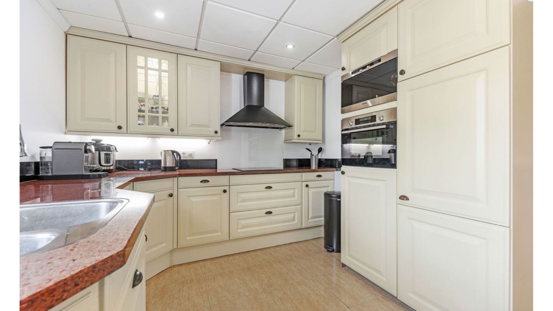 Een indrukwekkende entreehal leidt naar een ruime woonkamer, een formele eetkamer en een volledig uitgeruste keuken met aangrenzende wasruimte.