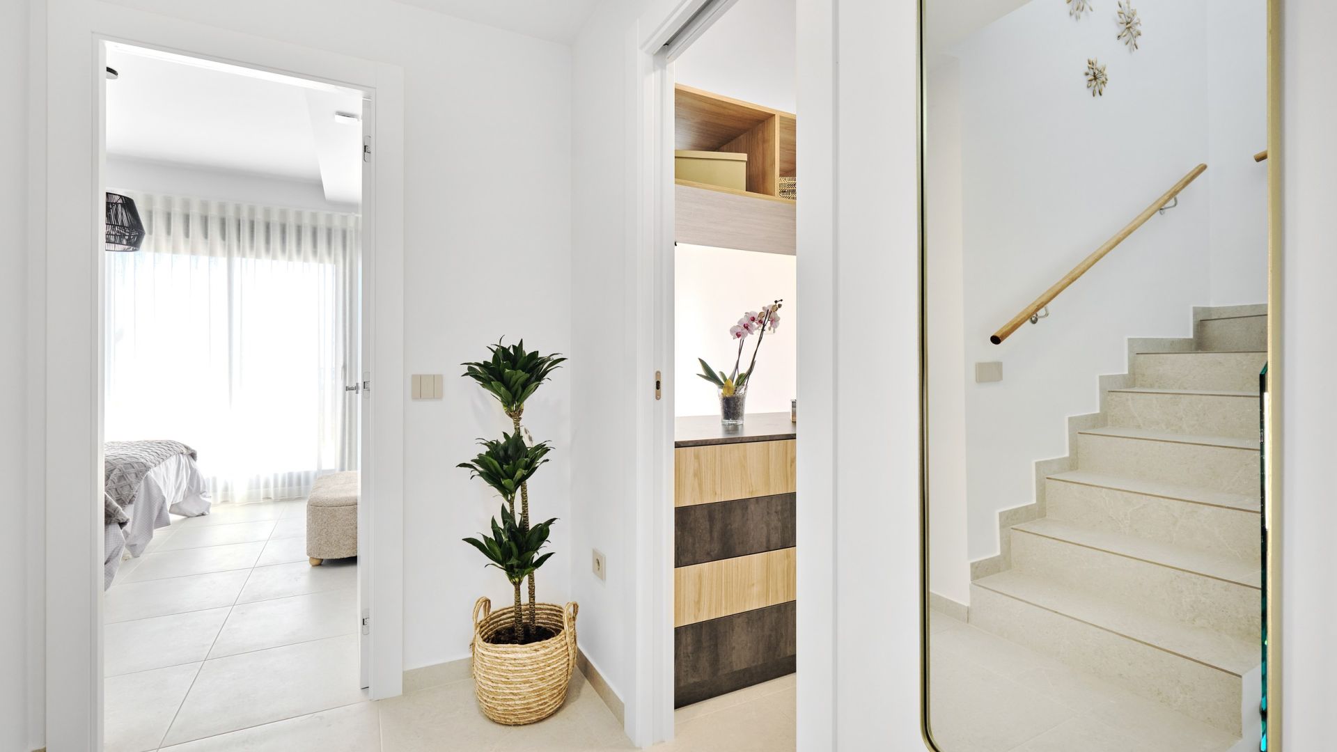 Het interieur van deze onafhankelijke woningen is ontworpen met een focus op comfort en functionaliteit. Met drie slaapkamers en twee badkamers biedt elke woning een ruime en goed ingedeelde ruimte. De vloeren van porseleinen tegels geven de binnenruimtes een vleugje elegantie en duurzaamheid. De keukens zijn uitgerust met moderne apparaten, wat het dagelijks leven vergemakkelijkt. Bovendien zorgt de airconditioning het hele jaar door voor een comfortabel klimaat. Ingebouwde kasten bieden efficiënte opslag en houden de ruimtes netjes en rommelvrij.