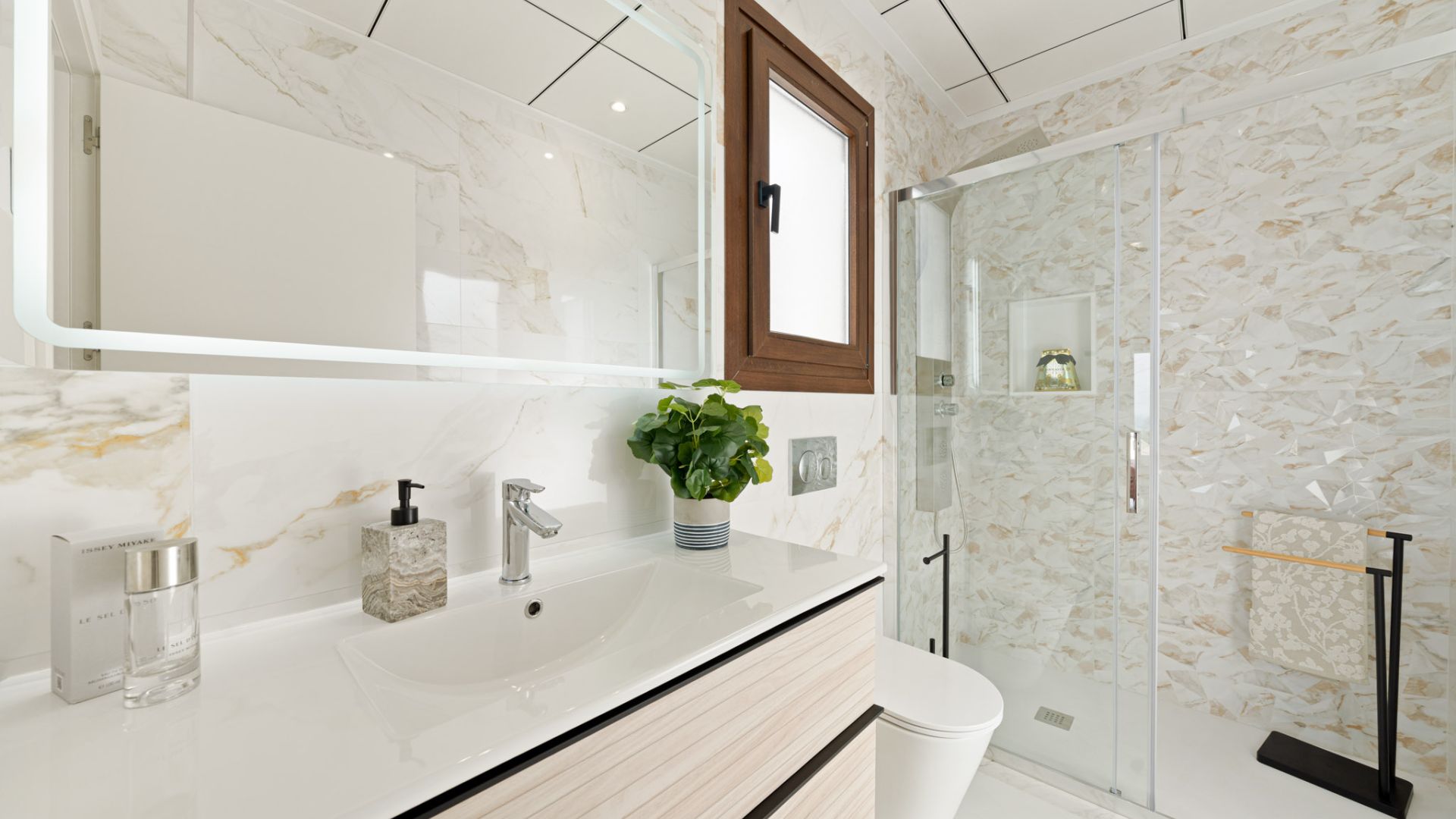 De woningen vallen op door hun zorgvuldig ontworpen buitenruimtes. Elke woning heeft een privé tuin, perfect om te genieten van de buitenlucht en ontspannende momenten met familie of vrienden. Bovendien bieden de terrassen extra ruimte om te genieten van het mediterrane klimaat en het indrukwekkende uitzicht op zee. Voor degenen die op zoek zijn naar een extra vleugje luxe, is er de optie om een solarium toe te voegen, ideaal om in volledige privacy van de zon te genieten. De aanwezigheid van een privézwembad in elke woning voegt een element van exclusiviteit en comfort toe, waardoor u kunt genieten van verfrissende duiken tijdens de warme zomerdagen.