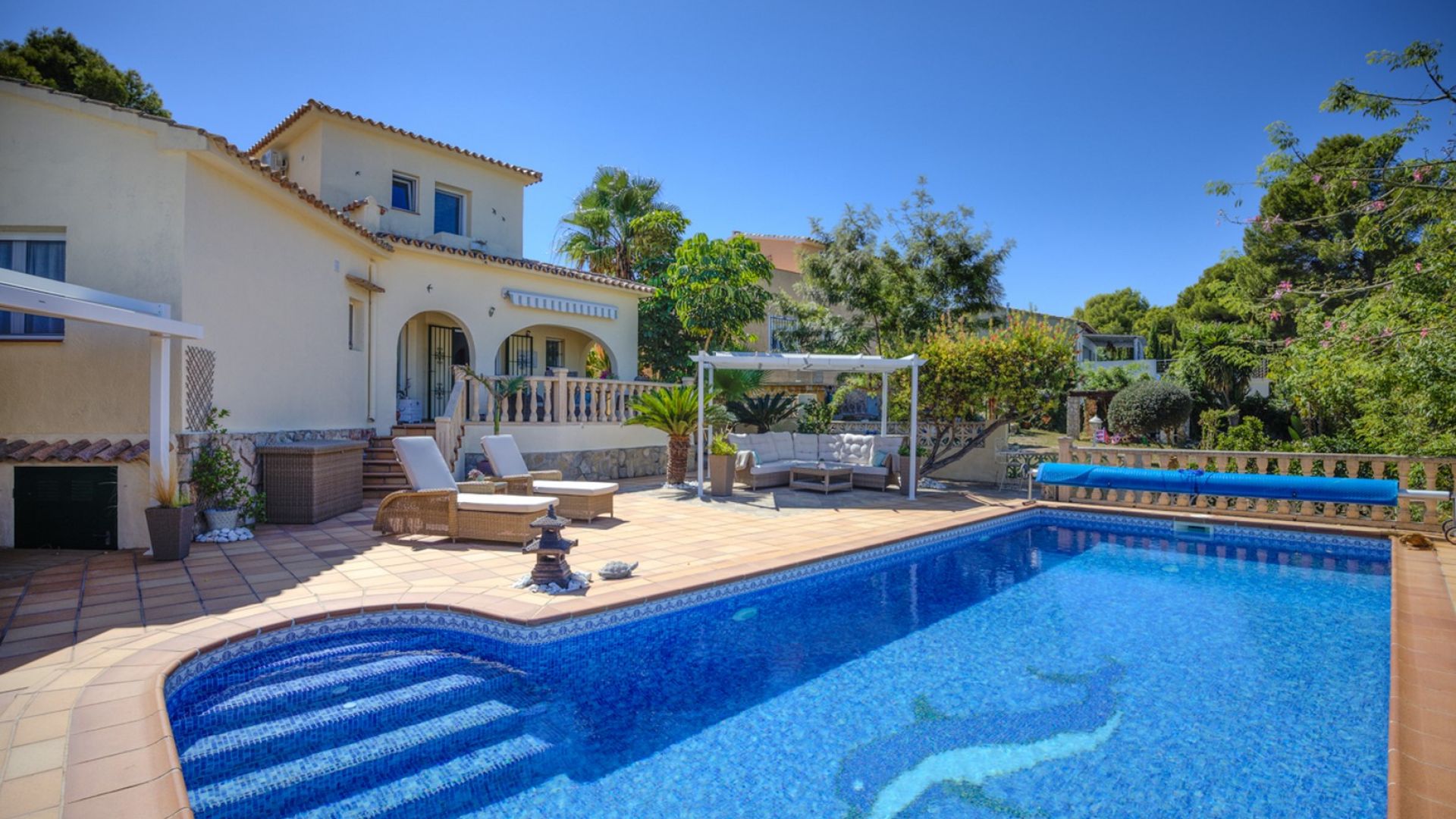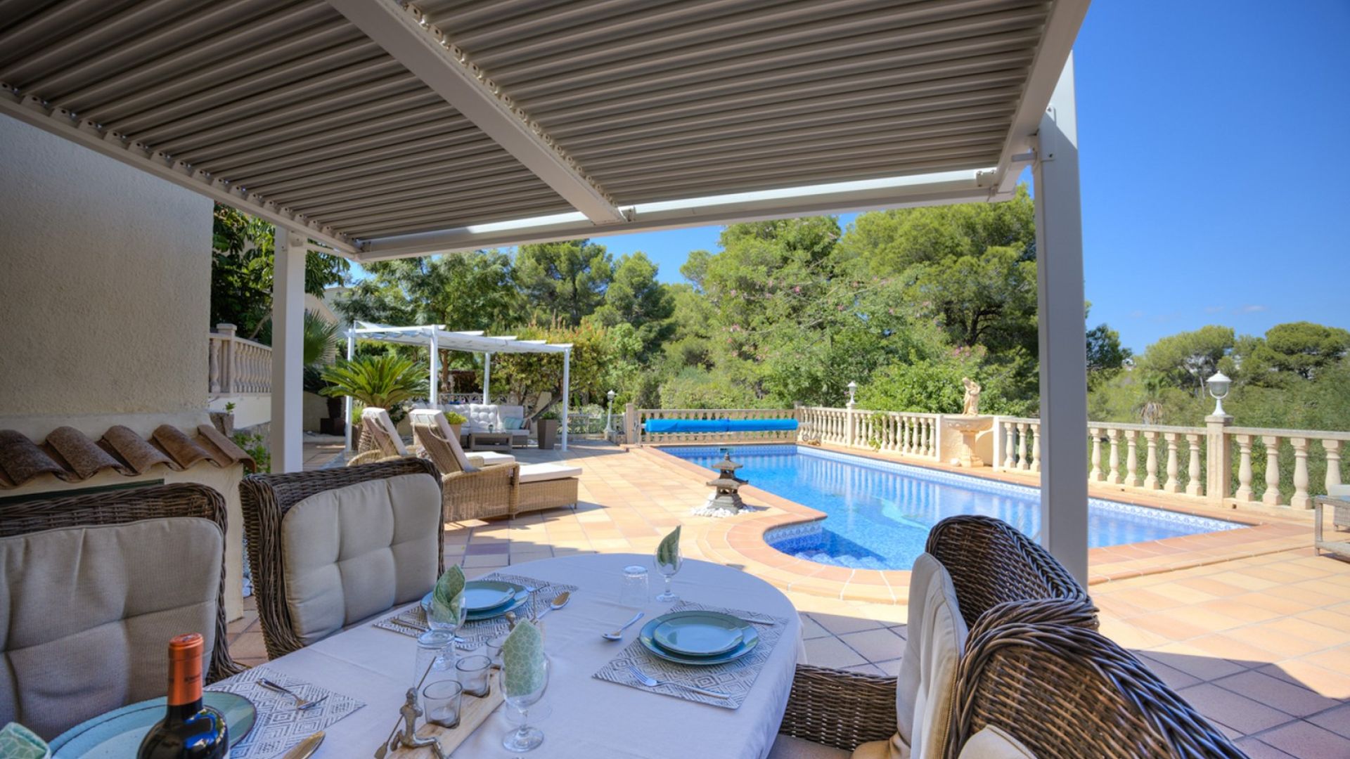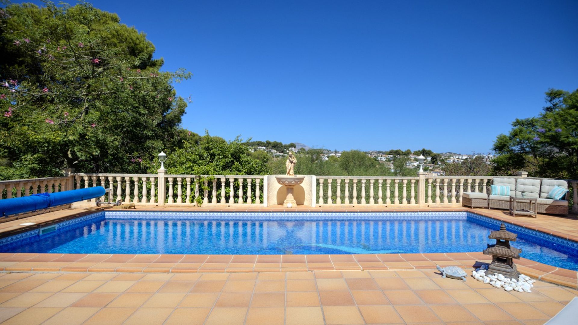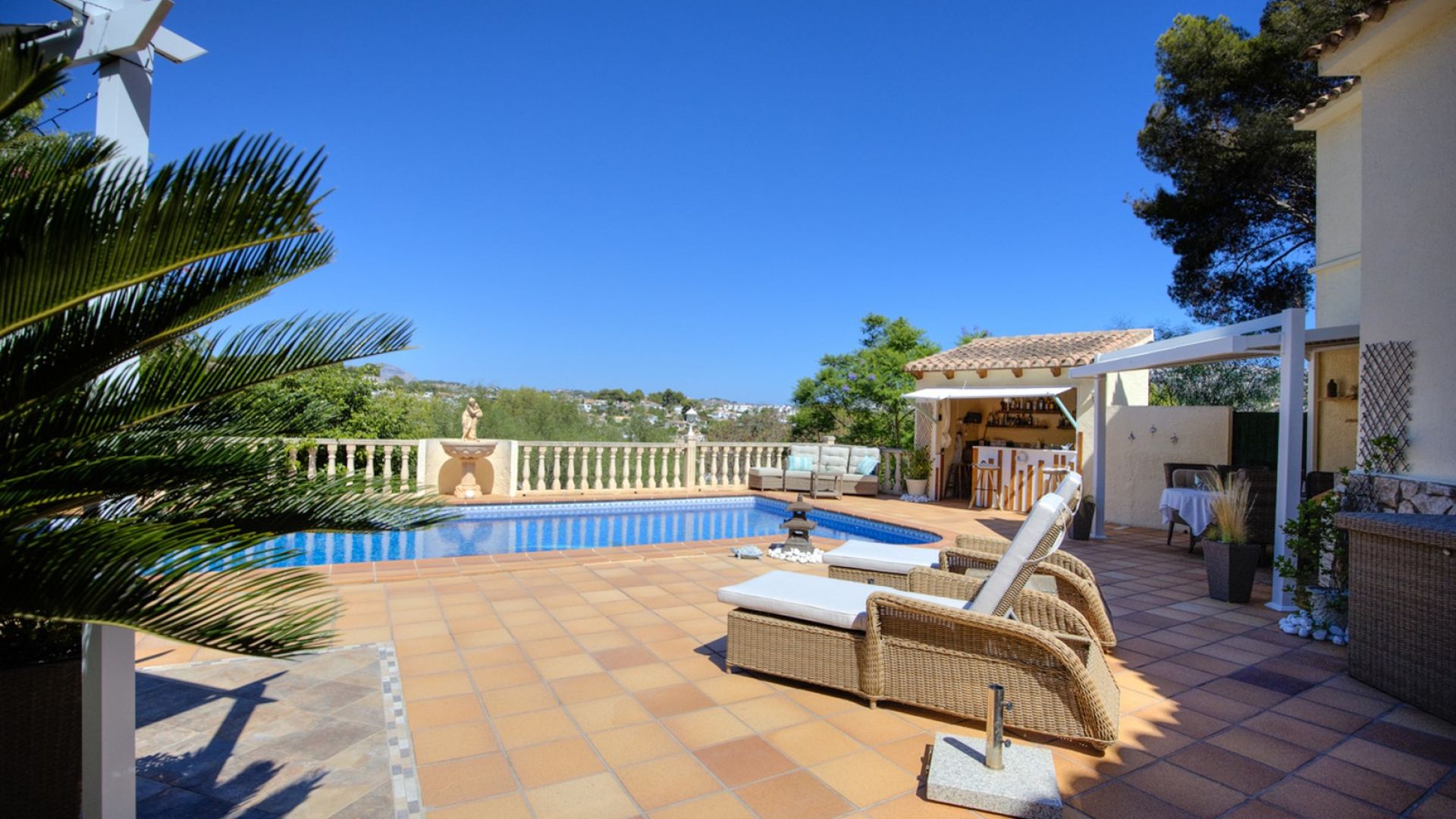 Luxury Villa for Sale in Sabatera, Moraira - Walking Distance to AmenitiesDiscover this beautifully presented luxury villa for sale in the sought-after area of Sabatera, Moraira. Perfectly located within a short stroll of all amenities, the property is just minutes away from a supermarket, two artisan bakeries, and a wide choice of bars and restaurants. Moraira town centre and the stunning sandy beaches are only a 15-minute walk from your doorstep.The villa offers nearly 300 m² of immaculate living space, thoughtfully distributed across two floors connected by an elegant internal staircase.On the ground floor, you'll find spacious open-plan living with an interlinked lounge, dining area, and modern kitchen that flow seamlessly to both front and rear terraces as well as the pool area. A separate guest wing with direct pool access provides excellent privacy, featuring three generously sized double bedrooms, each with its own en-suite bathroom. Completing the ground level are a utility/laundry room, guest toilet, and a small garage.Property Features: Nearly 300 m² of living space distributed over two floors Spacious open-plan lounge, dining and kitchen areas with seamless access to terraces and pool Four double bedrooms, all with en-suite bathrooms. Utility/laundry room, guest toilet, and garage Internal staircase connecting both levels External storage plus a workshop. Fully air-conditioned (hot and cold in all rooms)Open views bordering a green zone in Moraira Outside, the villa is designed for year-round Mediterranean living. Enjoy a covered poolside porch with lounge and dining areas, a sunny terrace with pergola, and a 10-metre heated swimming pool. For entertaining, there's a fully equipped summer kitchen with bar and barbecue, perfect for al fresco dining with family and friends.Outdoor Living: Large 10-metre heated swimming pool with sunny terrace and pergola Covered poolside porch with lounge and dining areas Summer kitchen with bar and barbecue – perfect for entertaining Low-maintenance Mediterranean gardens This villa for sale in Sabatera, Moraira is a rare opportunity to own a high-quality home in one of the most desirable areas on the Costa Blanca. With spacious interiors, excellent outdoor living spaces, and a prime location close to the beach and town centre, it's an ideal choice for families, retirees, or investors.Don't miss out on this exceptional property for sale in Moraira – contact us today to arrange a viewing.