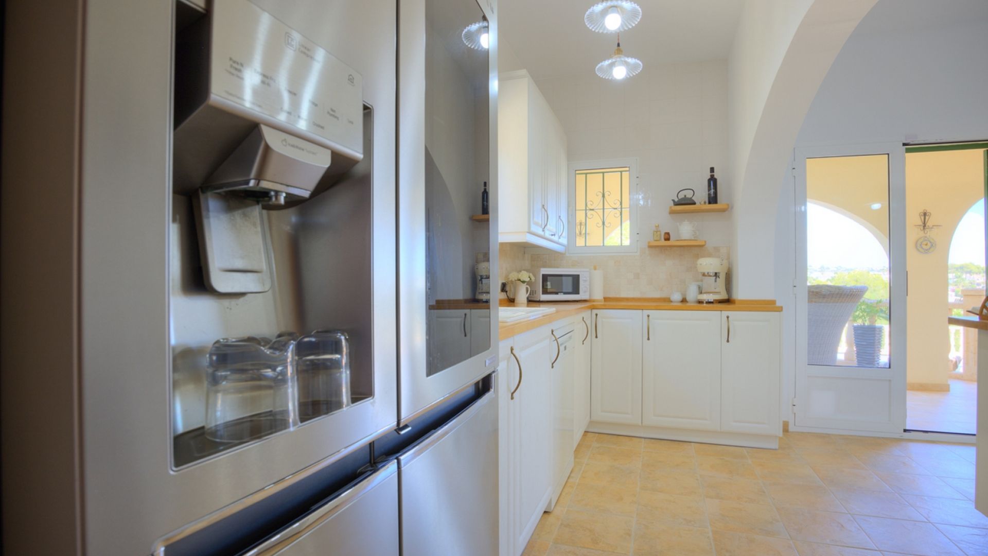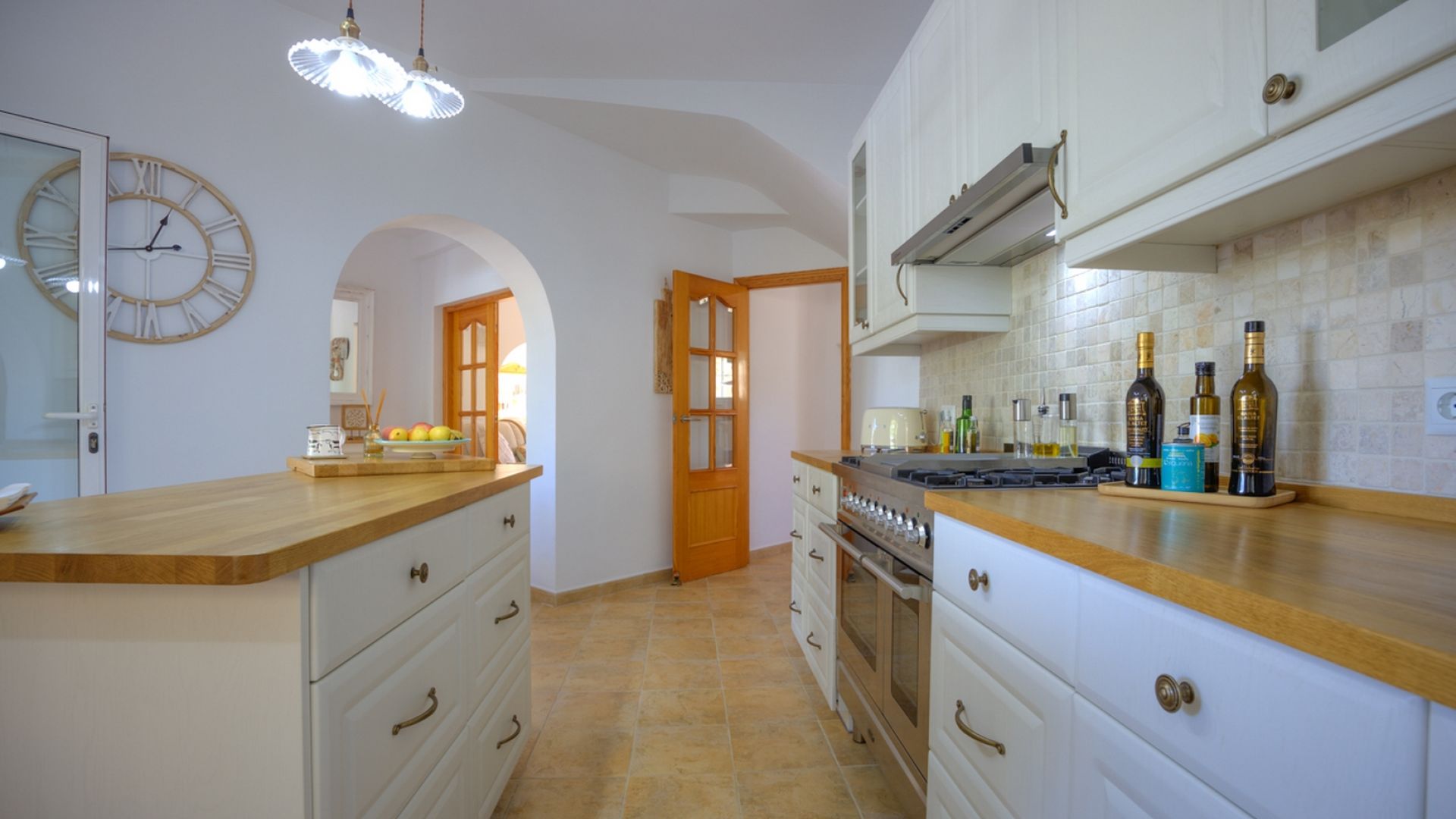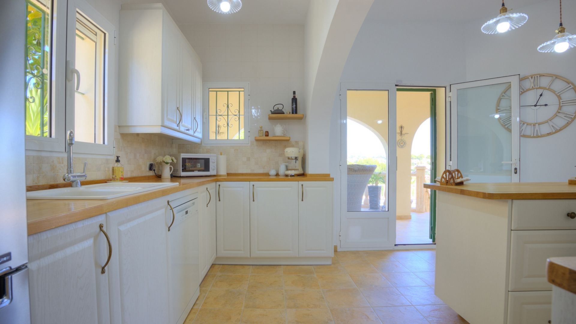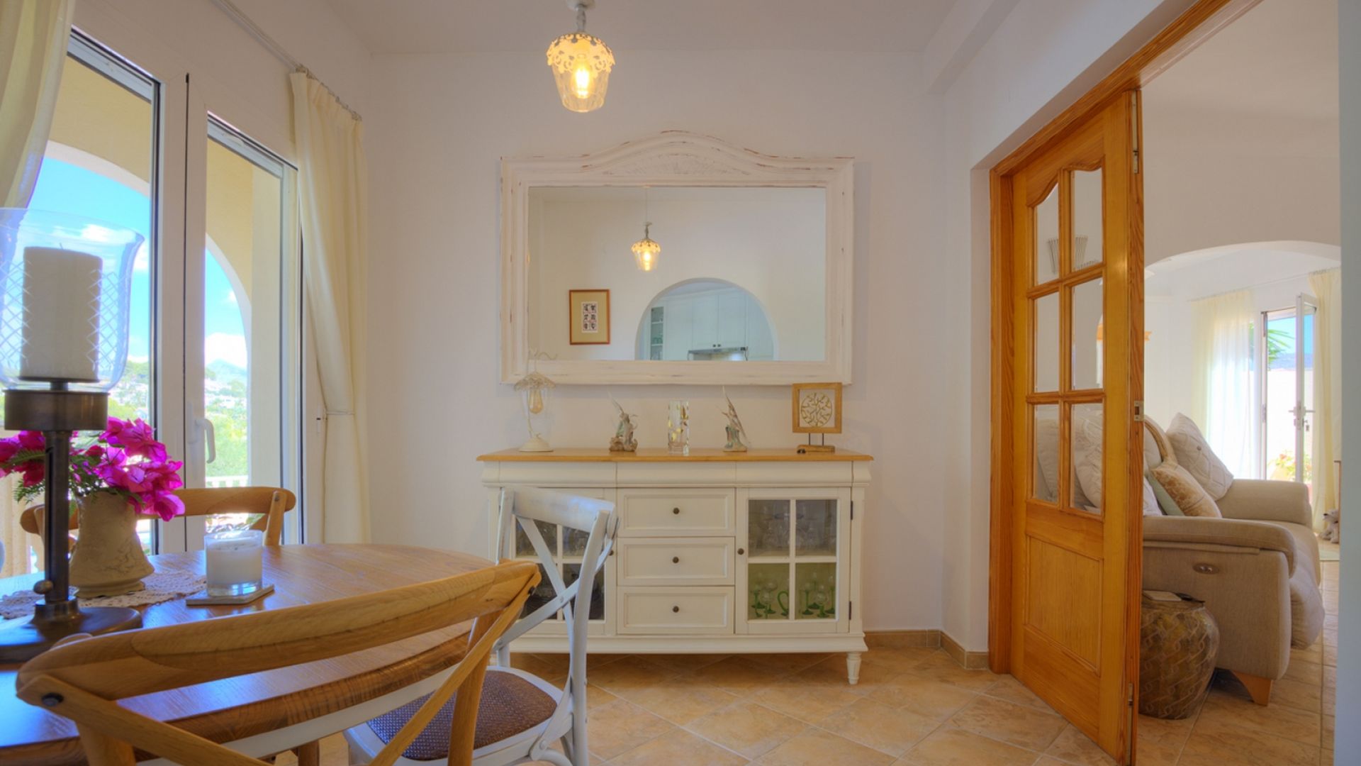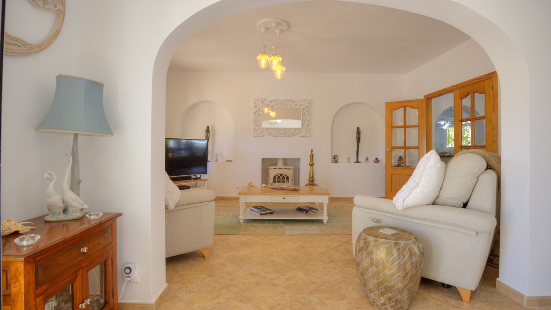 Luxury Villa for Sale in Sabatera, Moraira - Walking Distance to AmenitiesDiscover this beautifully presented luxury villa for sale in the sought-after area of Sabatera, Moraira. Perfectly located within a short stroll of all amenities, the property is just minutes away from a supermarket, two artisan bakeries, and a wide choice of bars and restaurants. Moraira town centre and the stunning sandy beaches are only a 15-minute walk from your doorstep.The villa offers nearly 300 m² of immaculate living space, thoughtfully distributed across two floors connected by an elegant internal staircase.On the ground floor, you'll find spacious open-plan living with an interlinked lounge, dining area, and modern kitchen that flow seamlessly to both front and rear terraces as well as the pool area. A separate guest wing with direct pool access provides excellent privacy, featuring three generously sized double bedrooms, each with its own en-suite bathroom. Completing the ground level are a utility/laundry room, guest toilet, and a small garage.Property Features: Nearly 300 m² of living space distributed over two floors Spacious open-plan lounge, dining and kitchen areas with seamless access to terraces and pool Four double bedrooms, all with en-suite bathrooms. Utility/laundry room, guest toilet, and garage Internal staircase connecting both levels External storage plus a workshop. Fully air-conditioned (hot and cold in all rooms)Open views bordering a green zone in Moraira Outside, the villa is designed for year-round Mediterranean living. Enjoy a covered poolside porch with lounge and dining areas, a sunny terrace with pergola, and a 10-metre heated swimming pool. For entertaining, there's a fully equipped summer kitchen with bar and barbecue, perfect for al fresco dining with family and friends.Outdoor Living: Large 10-metre heated swimming pool with sunny terrace and pergola Covered poolside porch with lounge and dining areas Summer kitchen with bar and barbecue – perfect for entertaining Low-maintenance Mediterranean gardens This villa for sale in Sabatera, Moraira is a rare opportunity to own a high-quality home in one of the most desirable areas on the Costa Blanca. With spacious interiors, excellent outdoor living spaces, and a prime location close to the beach and town centre, it's an ideal choice for families, retirees, or investors.Don't miss out on this exceptional property for sale in Moraira – contact us today to arrange a viewing.