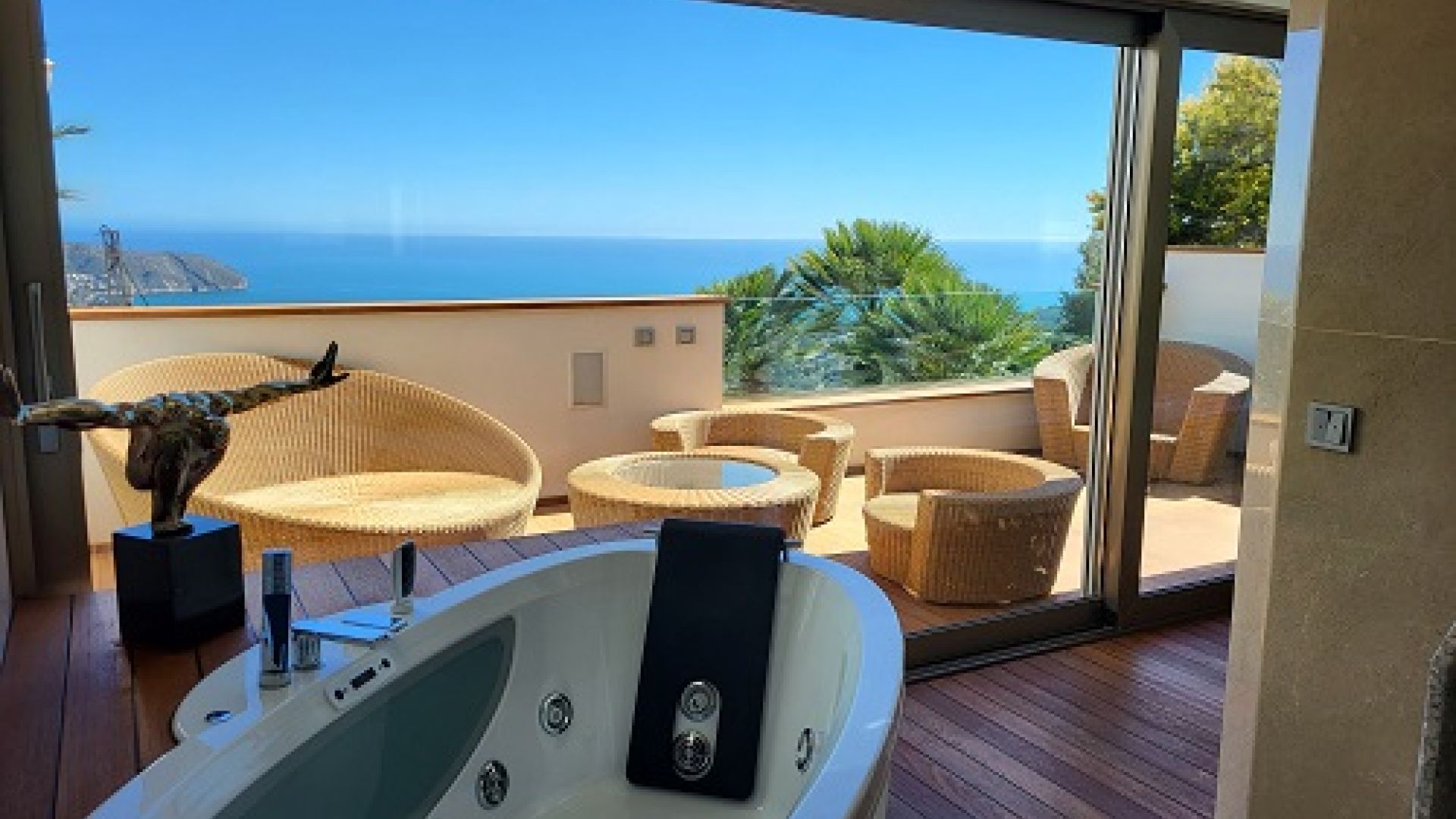 Exquisite modern luxury villa located in the prestigious area of Benimeit, Moraira, offering breathtaking panoramic sea views. This outstanding property features a built area of 407 m² set on a 1,040 m² plot, designed to provide maximum comfort, style, and privacy. ✨ Key Features: 4 spacious bedrooms 3 elegant bathrooms Bright and open-plan living and dining area Fully equipped modern kitchen with high-quality finishes Private gym Closed garage Infinity pool with stunning sea views Beautifully landscaped Mediterranean garden The villa is equipped with all modern comforts, including air conditioning, underfloor heating, and premium materials throughout. An ideal home to enjoy the Mediterranean lifestyle in one of the most exclusive areas of the Costa Blanca.